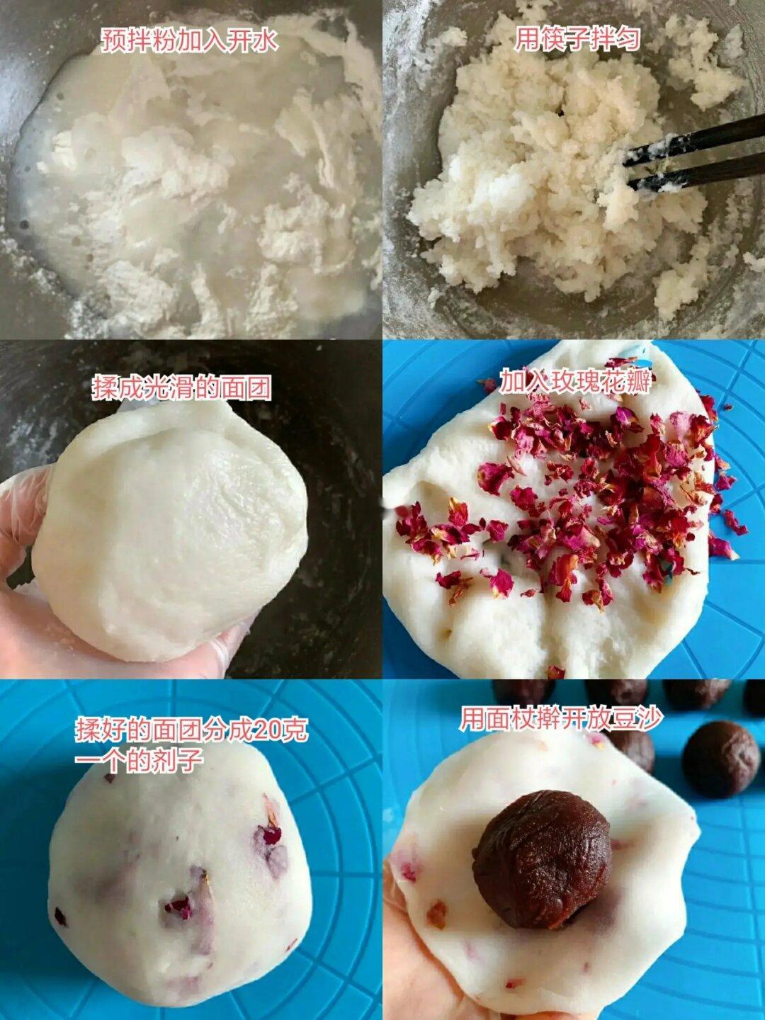 [三R]用筷子搅拌均匀,揉成光滑的面团,加入玫瑰花瓣
