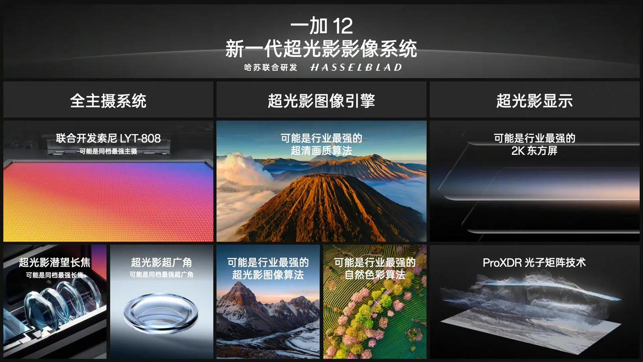 一加12到底何时发布?或许成为了机圈的一个谜! 目前已知一加12的配置只有两点。一是,将搭载联合索尼开发的可能是同档最强的 LYT-808 旗舰主摄、同档最强的超光影潜望长焦镜头;二是,算法和显示上,搭载自研超光影图像引擎、可能是行业最强的 2K 东方屏+自研 ProXDR 超光影显示技术。 不吹不黑,其实一加12光靠屏幕和影像这两个亮点就可以发布了,现在迟迟没有官宣发布时间,真的不知道是什么原因,难道后续还有大招?