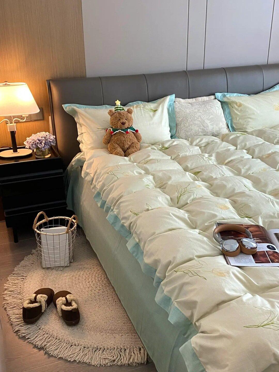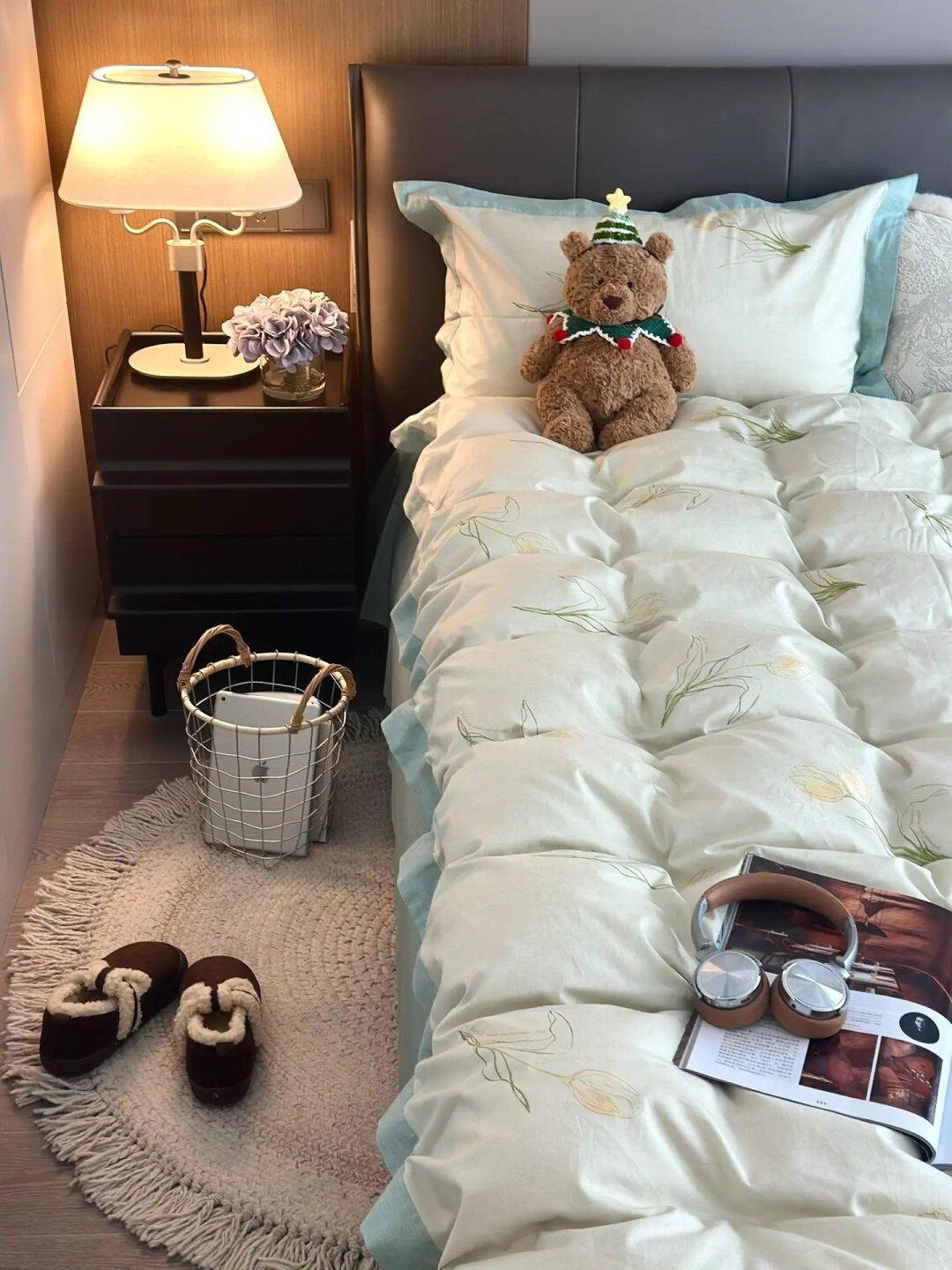 颜色和花纹也是我很喜欢的,淡淡的黄色很温暖,给冬日的小房间增加了一份暖意,睡感真的超级舒服