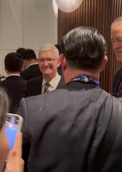 大家都知道美国这几天举办了APEC峰会,很多国外的重要人物也都过来了,在晚宴上还邀请了很多知名的企业家,其中苹果的库克就是其中一位,当天的库克打扮非常帅气,一身黑色西装搭配格纹领带非常时尚,不过他的头发几乎全白了。更加让人惊喜的是库克还双手插兜,看到有人拍摄,还举手打招呼,一点也没有大佬的架子。