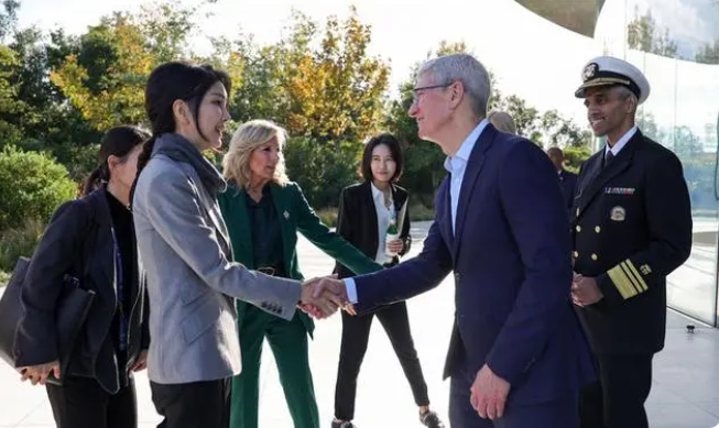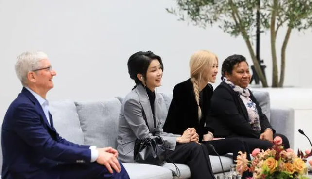 11月18日韩国第一夫人还有知名的女明星朴彩英以及苹果公司的总裁罕见坐在一起交流,不知道当时苹果公司的老总库克讲了一些什么话,让现场所有的人都开怀大笑,尤其是科技脸金建希更是难得的露出笑脸,一直都沉默板着脸的金建希笑起来还真温柔好看。不得不说已经51岁的金建希和朴彩英同框竟然看不出年龄差,两人相差25岁毫无违和感。