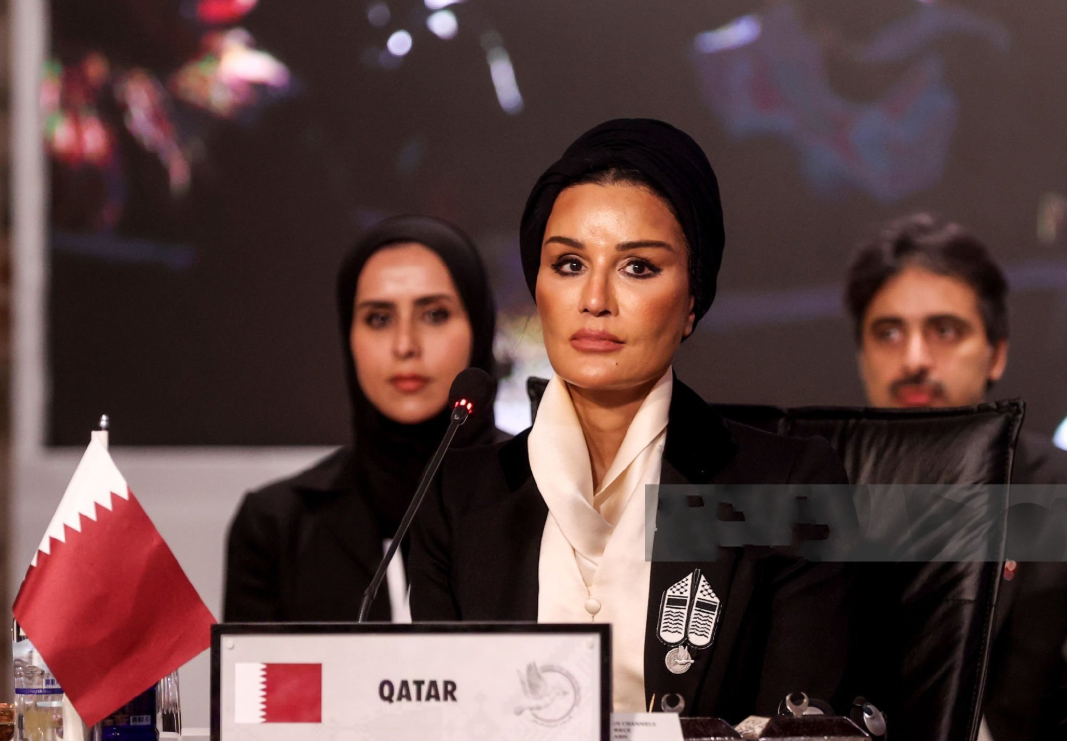 卡塔尔太后罕见低调!一身黑白配出席活动,全靠强大气场撑起,毕竟是行走在时尚前沿的王室太后,仍然彰显出雍容大气之美,脖子里还系着一条白色丝绸围巾,搭配黑色西服,太温柔美了。