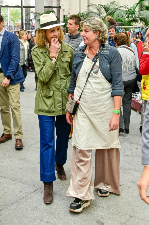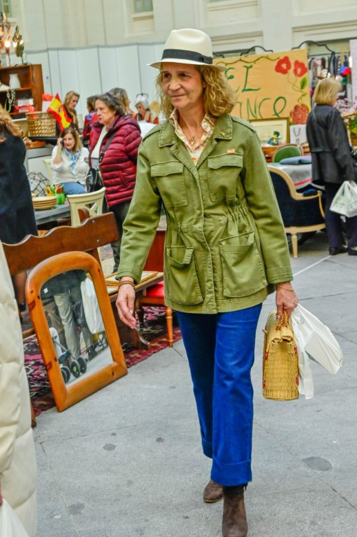 西班牙大姑姐,把绿色与蓝色穿出了贵气感,还头戴宽檐帽还多了几分英气;这身衣服太像8090年代的父母辈,一身简简单单撞色轻松驾驭,不愧是王室公主伊莲娜,被她美到了。