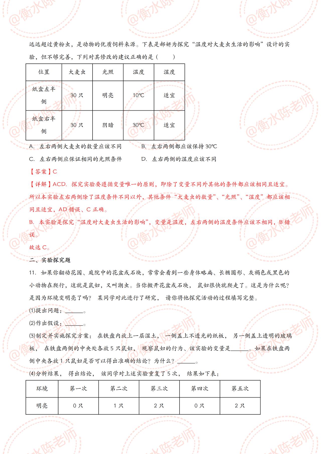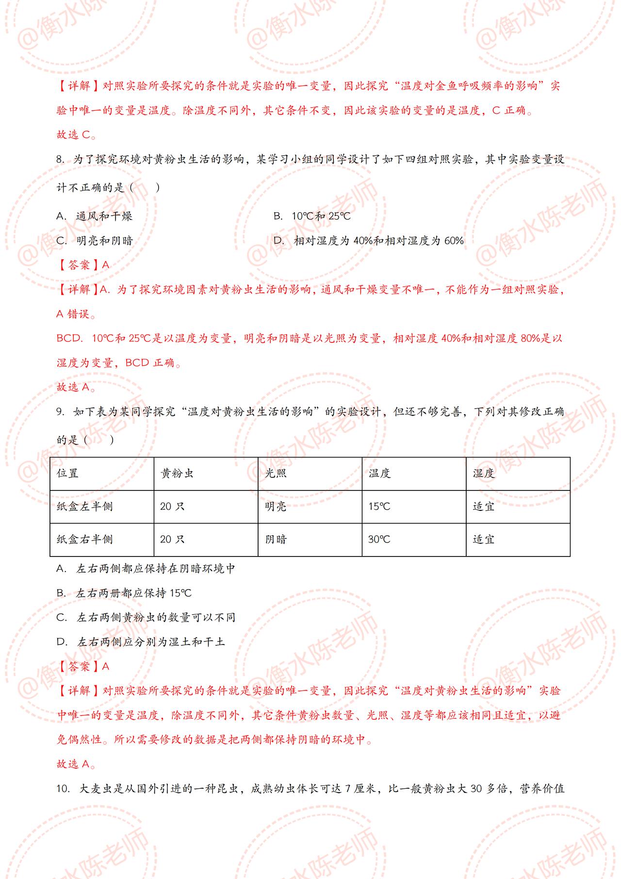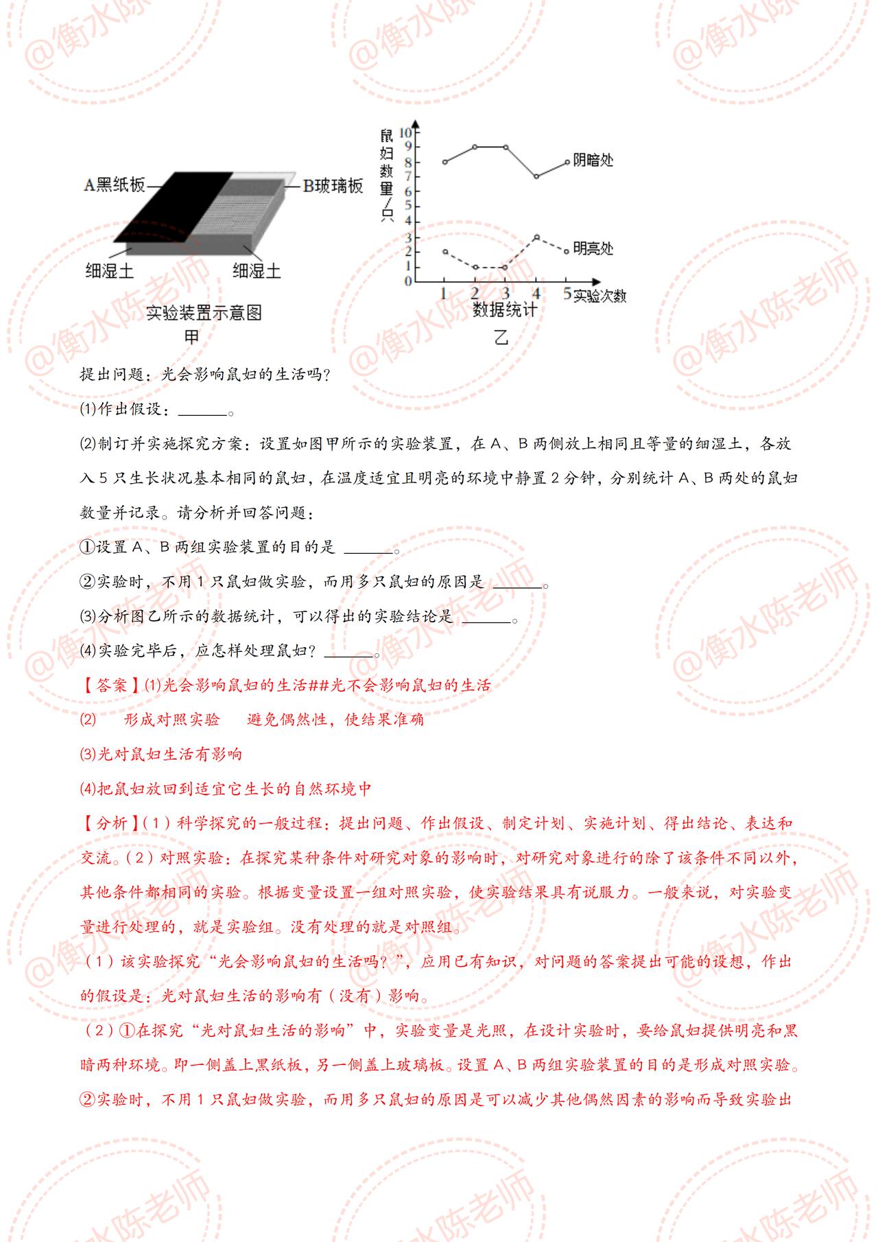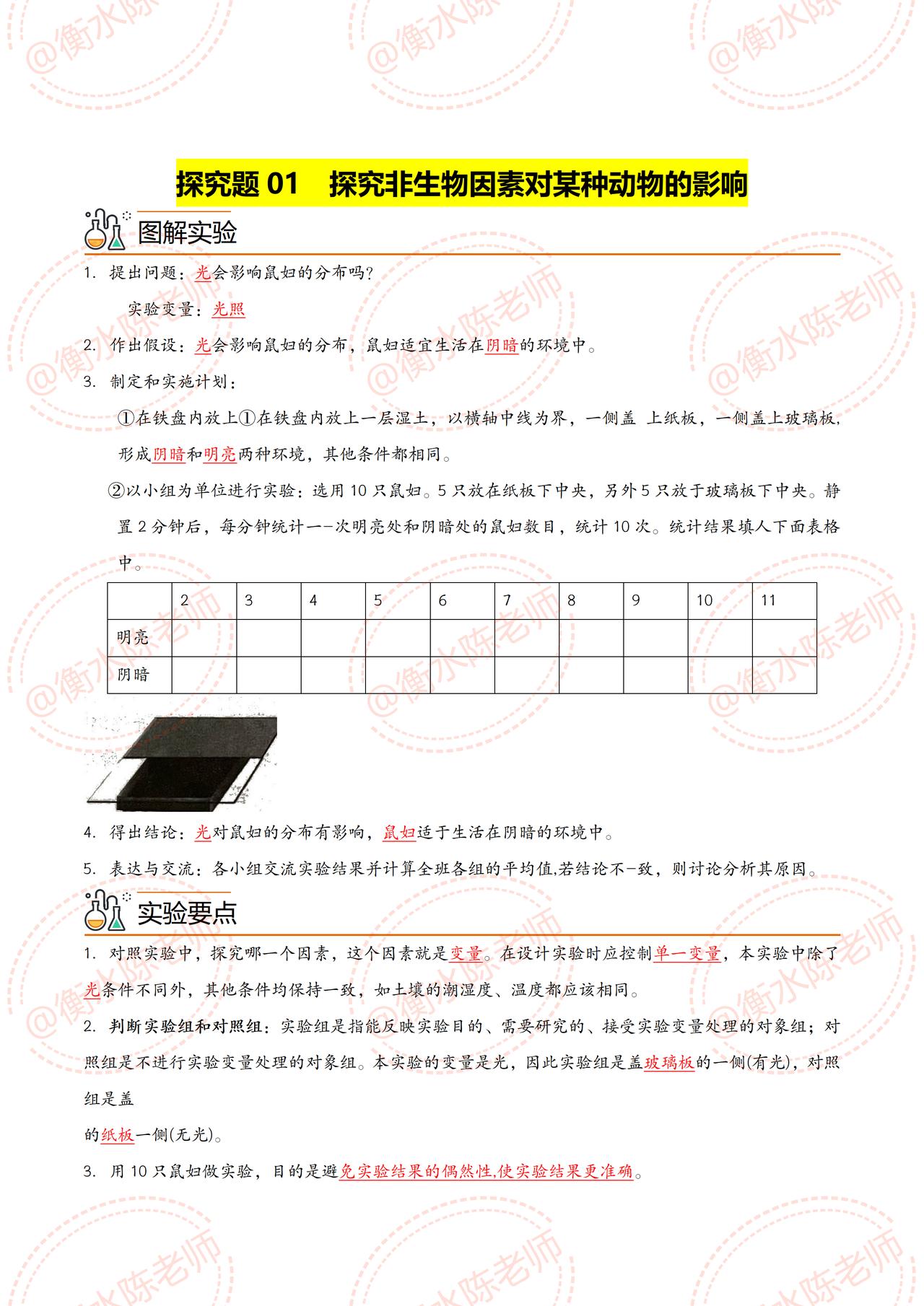 七年级上学期生物,期末考试复习,【实验题】专题训练,提前发给大家练习一遍,每道题都是考试中经常出现的热点考题,认真做一遍,做好复习,做好查漏补缺。