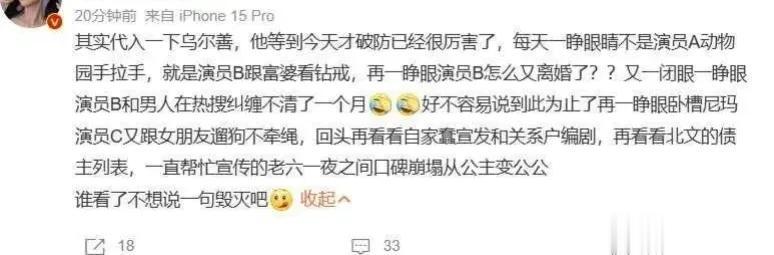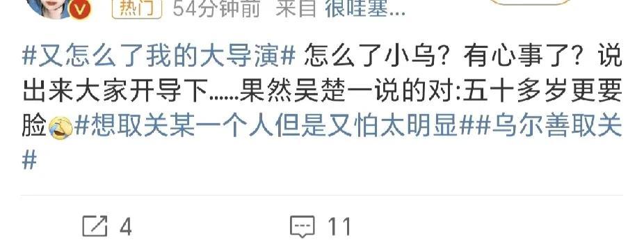 封神乌尔善导演取关了1132个关注,有人说导演太难了,想取关一个人,结果怕太明显,取关了1132个人。 网友:男演员太多容易出事,2.3赶紧上。 网友:50多岁更要脸。 网友:其实代入一下乌尔善,他等到今天才破防已经很厉害了,每天一睁眼睛不是演员A动物园手拉手,就是演员B跟富婆看钻戒,再一睁眼演员B怎么又离婚了??又一闭眼一睁眼 演员B和男人在热搜纠缠不清了一个月 ,好不容易说到此为止了,再一睁眼演员C又跟女朋友遛狗不牵绳,回头再看看自家蠢宣发和关系户编剧,再看看北文的债主列表,一直帮忙宣传的老六一夜之间口碑崩塌从公主变公公 谁看了不想说一句毁灭吧。