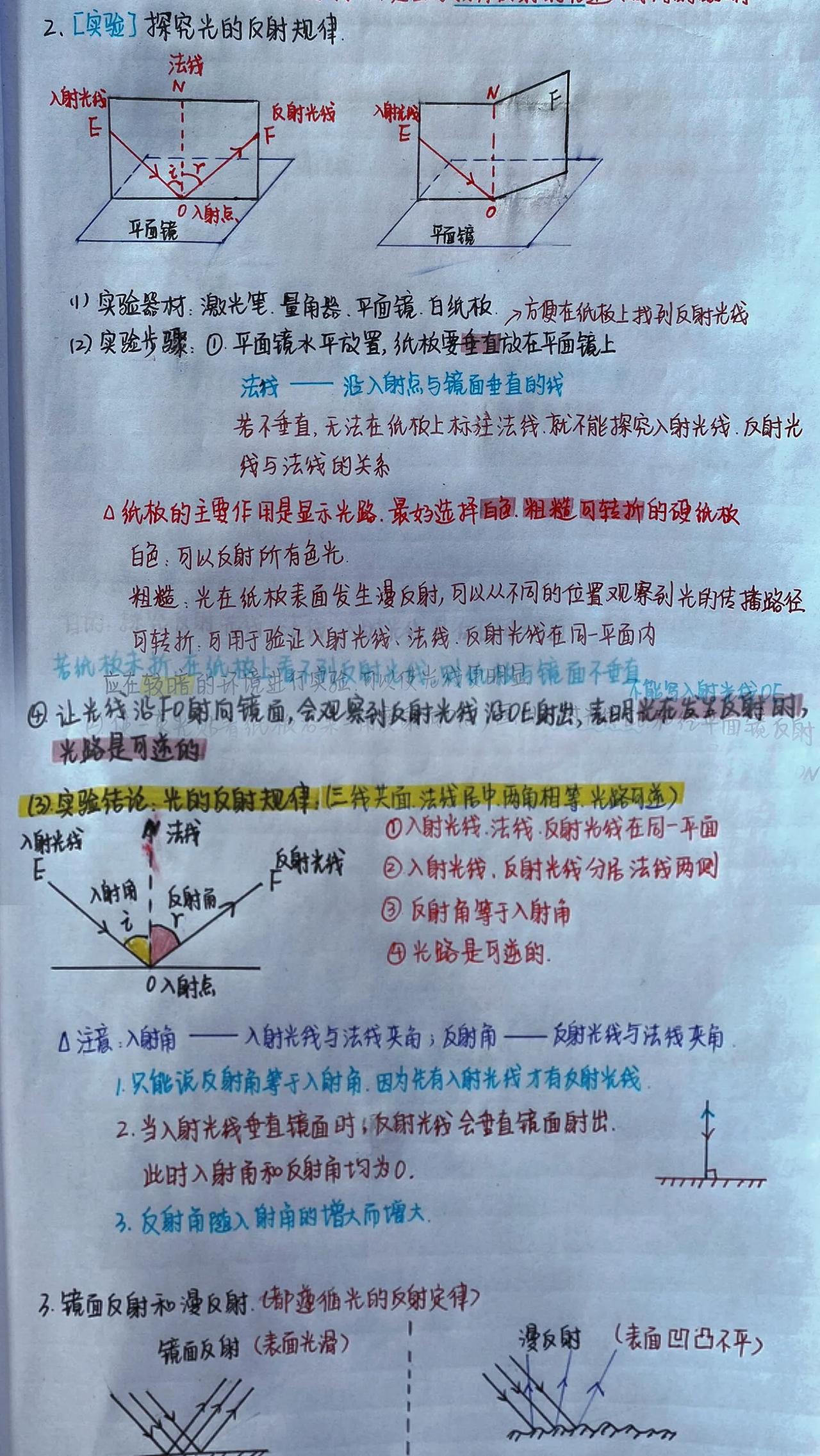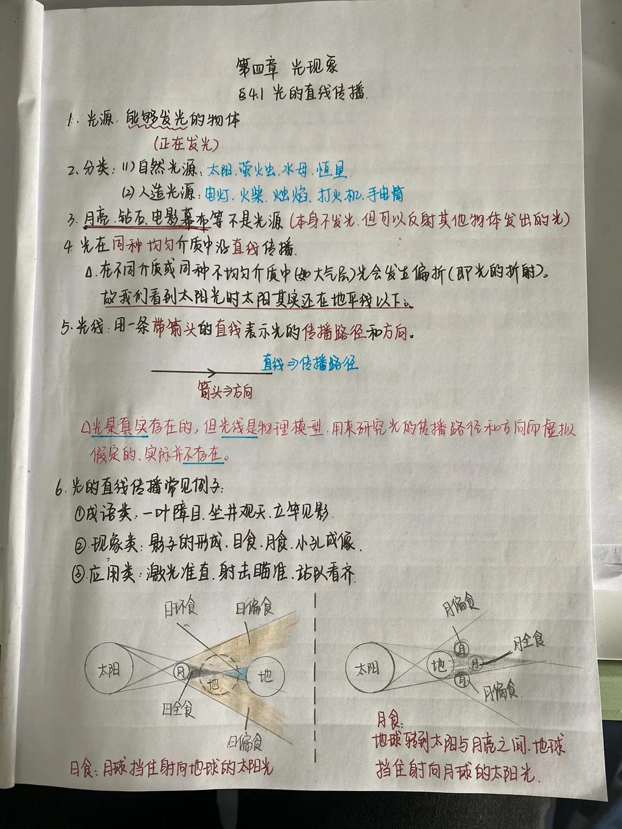 八年级上学期物理,第四章《光现象》重点必考内容,全部手写给大家,不喜欢写笔记,又不能掌握考试重点的学生,这套手抄笔记来之不易,都是老师一个字、一个字写出来的,主要还是担心学生,课堂上学不会,听不懂,课后又不会复习,才给同学们分享出来的,目的只有一个,很直接,就是提高学习效率,让学生多考分哦,赶紧保存打印出来吧#八年级物理# #初二物理#