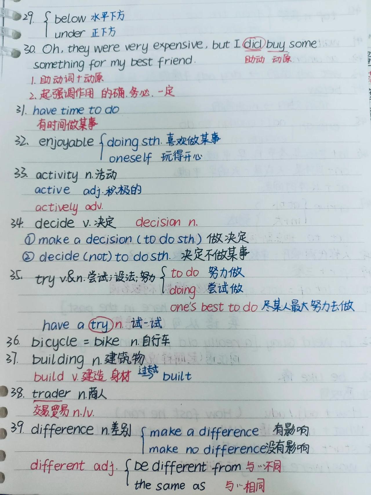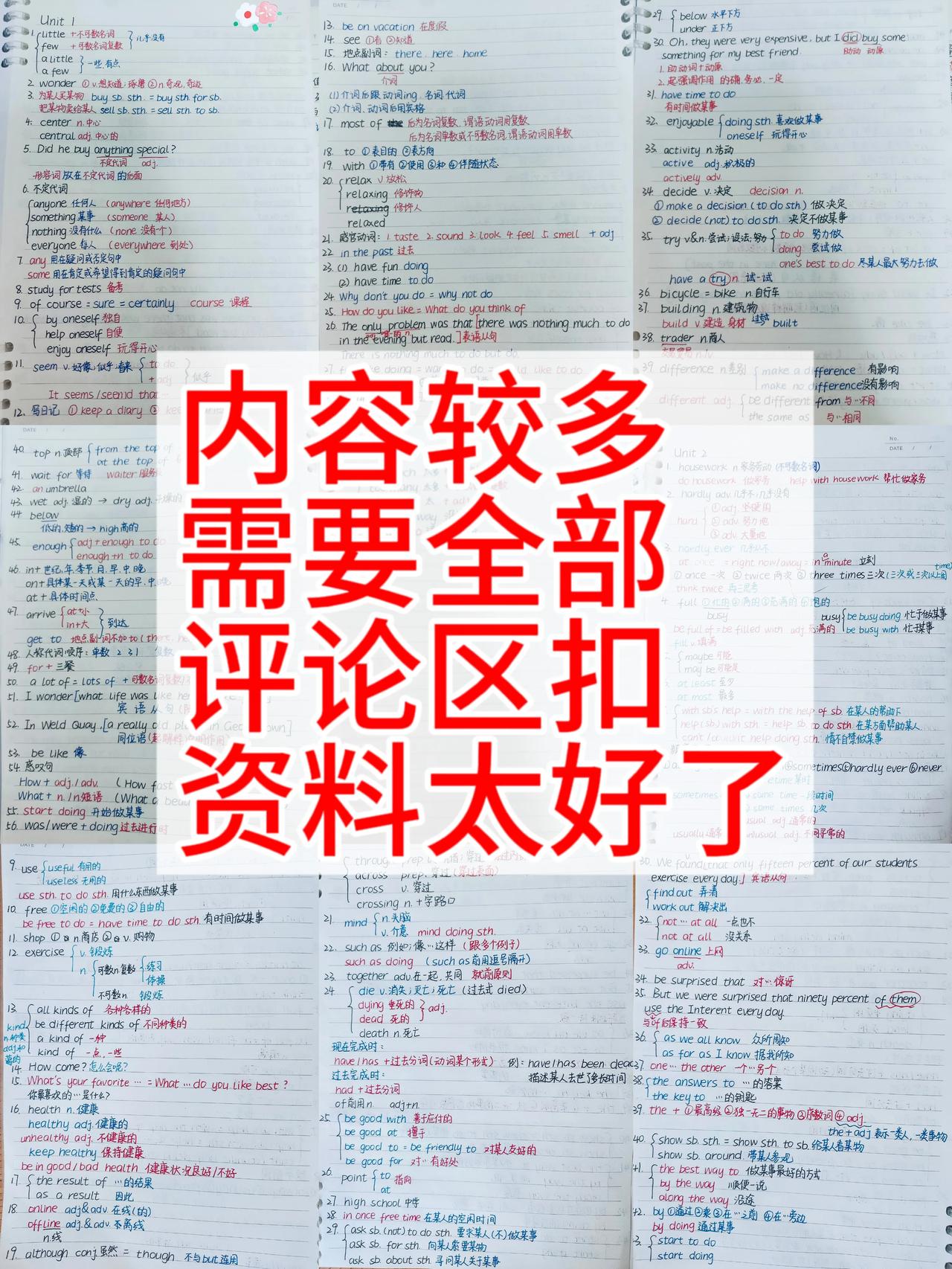 初二上学期英语,根据不同城市,不同版本编写的,各单元期末复习手写笔记,重点必出内容都在这里,期末考试前,认真背一遍,考试不下95哦。由于资料内容比较多,想要获取全部的考生,记得和我沟通聊一聊哦。#八年级英语# #初二英语#