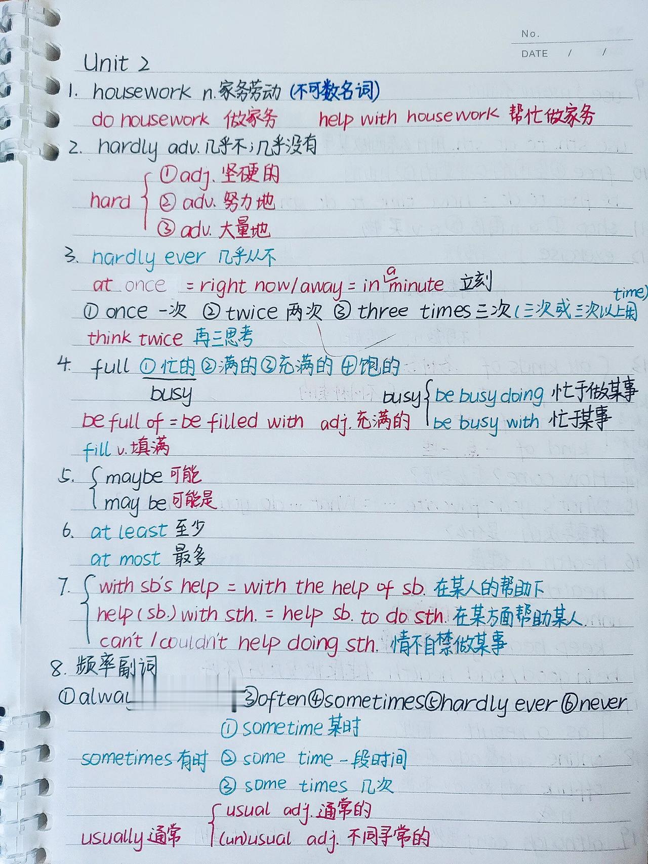 初二上学期英语,根据不同城市,不同版本编写的,各单元期末复习手写笔记,重点必出内
