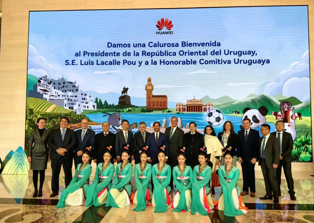 乌拉圭总统拉卡列访华第二天!他率领一行人去参访北京华为,这回换上正装了,西服配领