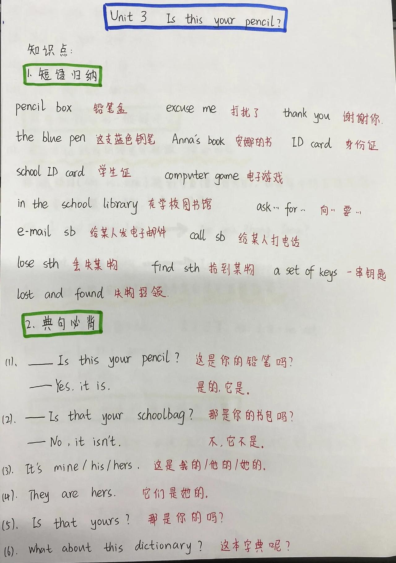 七年级上学期英语,根据不同城市,不同版本,编写的各单元重点笔记,老师按照考试重点,全部手写给大家,都是期末考试,试卷中必出内容,好好背诵,你的英语成绩也能从30考到90以上哦,由于资料比较多,想要全部,和我沟通吧。#七年级英语# #初一英语# #期末复习# #期末考试# #初一英语怎么学#