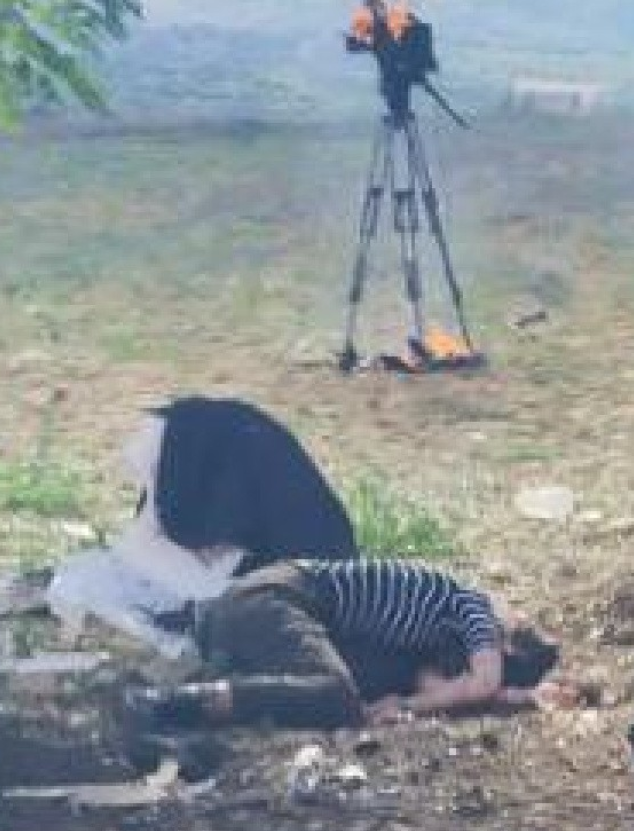 图5是 Al-Mayadeen 电视台记者法拉·奥马尔在现场报道的最后一则新闻。然后她就遇害了,就穿着这件黑白条纹衣服(见图6)。