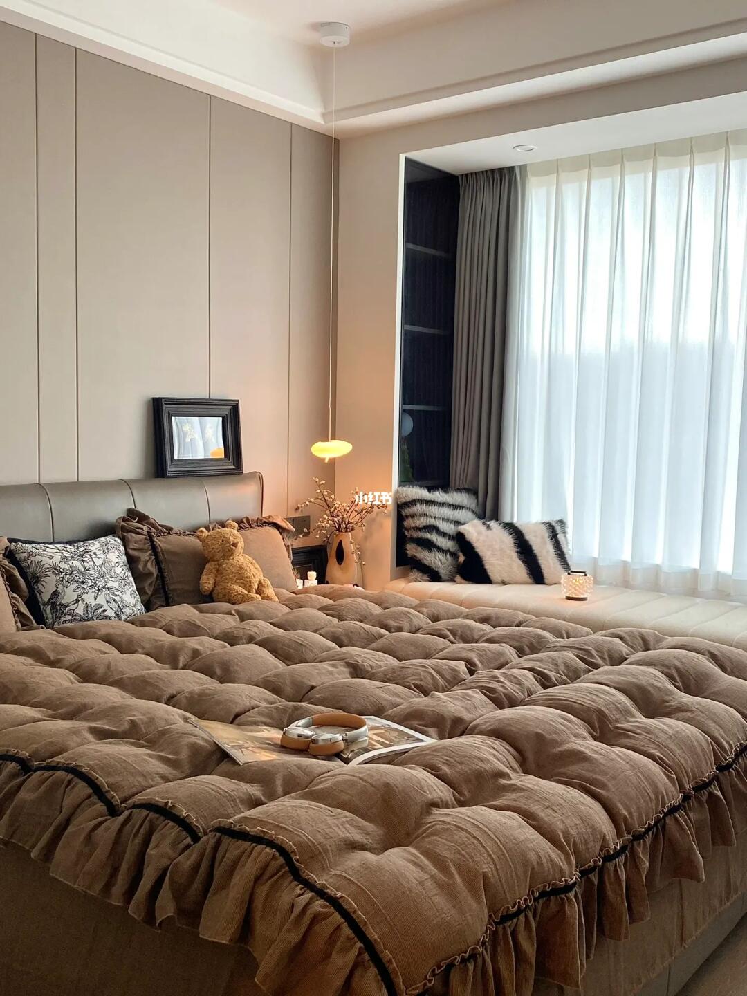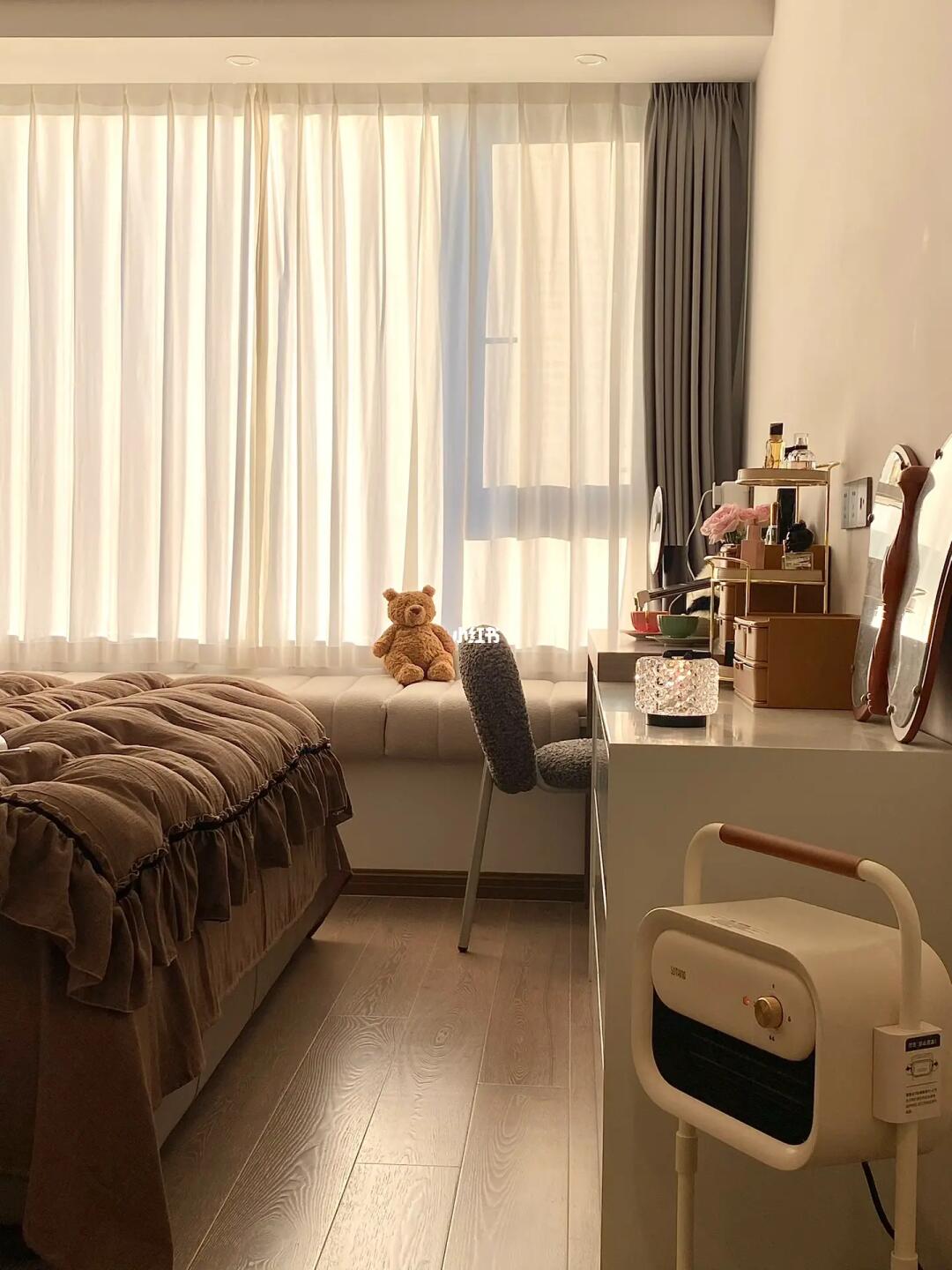 我的互联网公主们!欢迎来到咩咩的小窝~ 我的主卧一共13平米,自带卫生间和储藏室。 装修都是按照自己的喜好来的,想要的一切都能安排上!床尾斗柜化妆桌一体、一门到顶衣柜、飘窗不能砸,铺上飘窗垫又是一个放松休闲的好地方. 冬日里的小窝我真的太喜欢了 暖洋洋的 待在这里整个人心情都变好啦