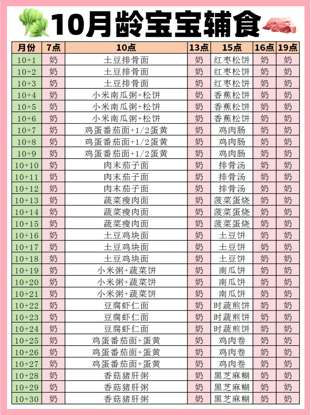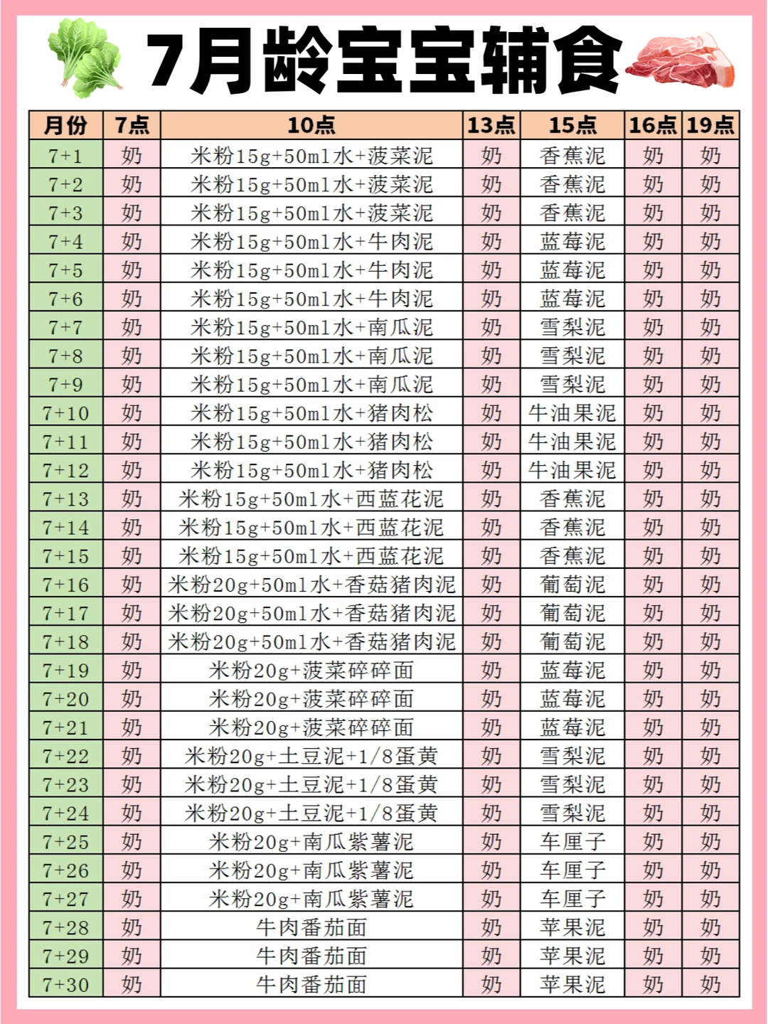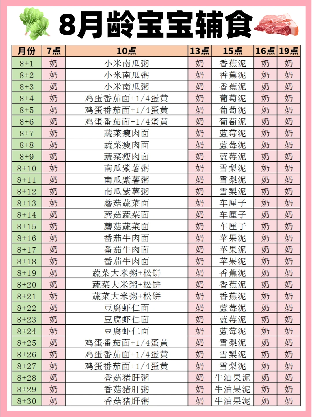 专家级❗6~12月龄辅食添加表,按月龄吃