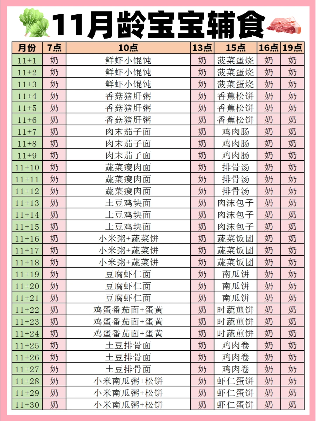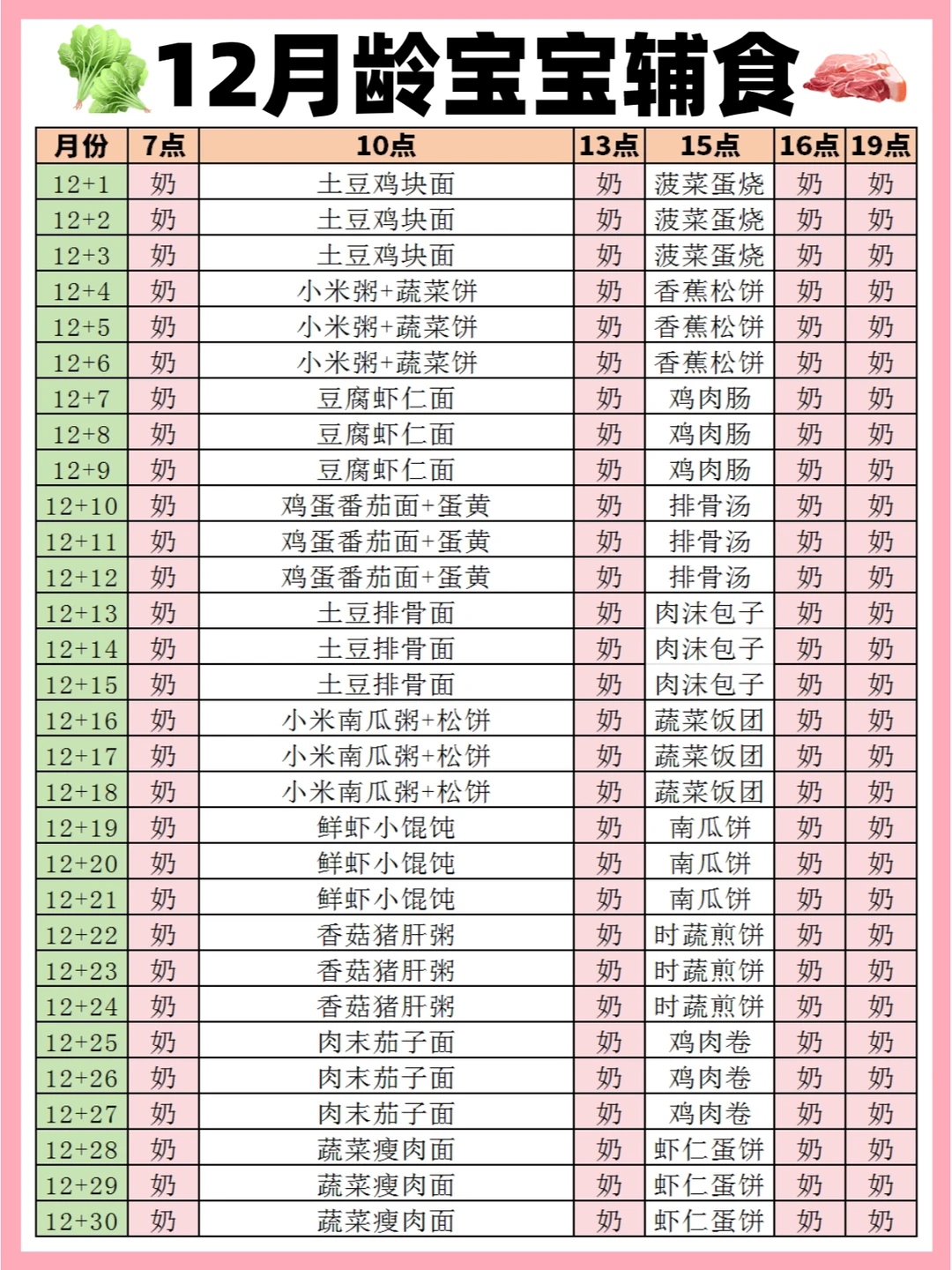 很多妈妈都在给孩子添加辅食的时候,由于缺乏经验,经常会手忙脚乱,这份6-12月辅食餐,精准到每个时间点,妈妈们可以打印出来,自己或家里人可以按照食谱喂宝宝,更专业更科学,轻松解决辅食难题!