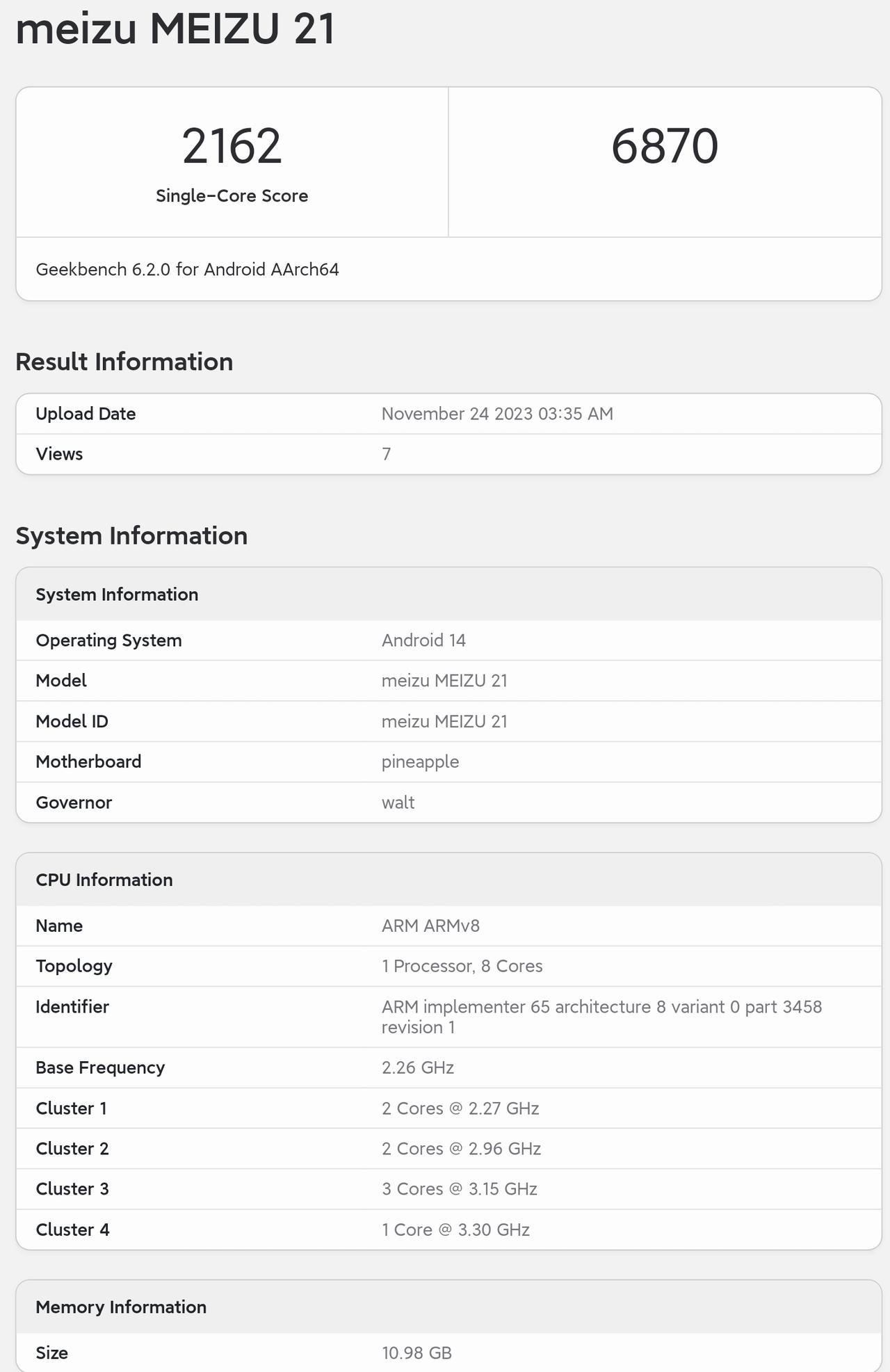 魅族部分配置曝光: 6.55英寸1.74mm四等边直屏,支持1920Hz高频调光,骁龙8 Gen3处理器,0916 X轴线性马达,超声波屏下指纹,Flyme10.5。 另外,魅族21的跑分也出来了,单核2162,多核6870,大家觉得魅族的驯龙水平如何?