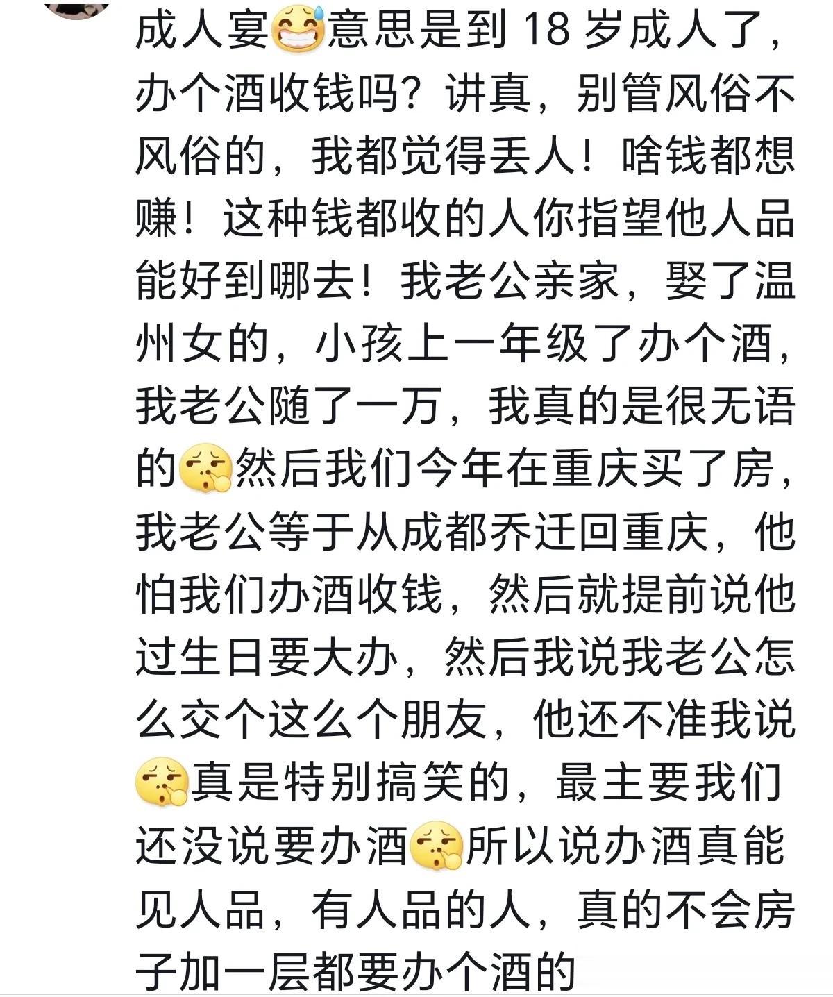 女子参加婚宴随礼1200元,结果错把红包给了一家办成人宴的,女子发现后索要红包,却要不回来了,于是找了媒体帮忙。 女子:开始随礼的时候,还跟那个大哥说自己是新娘子这边的朋友,然后那个办成人宴的大哥收了红包,别的啥也没说。 后面从新娘子那边知道自己随礼随错人了,于是和办成人宴的男子索要退1000元红包,拿了盒烟200元算自己消费,结果遭到该男子拒绝,后面找到媒体,该男子才把钱给了酒店,让酒店转给新娘子,该男子退钱的时候,还说这个钱就当打发叫花子了。 网友:办酒席可以看出人品,18岁还办酒席收份子,这是啥人啊!错收别人红包,贪小便宜,知道自己错了还理直气壮的。