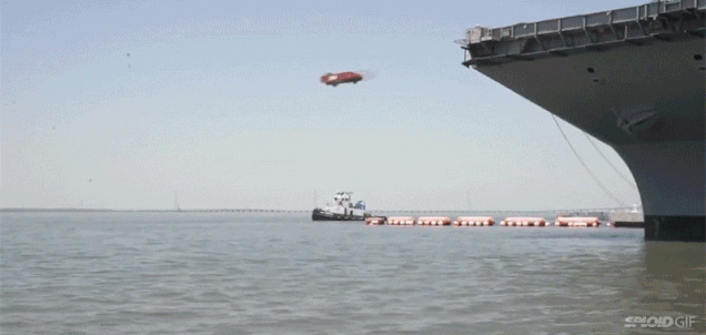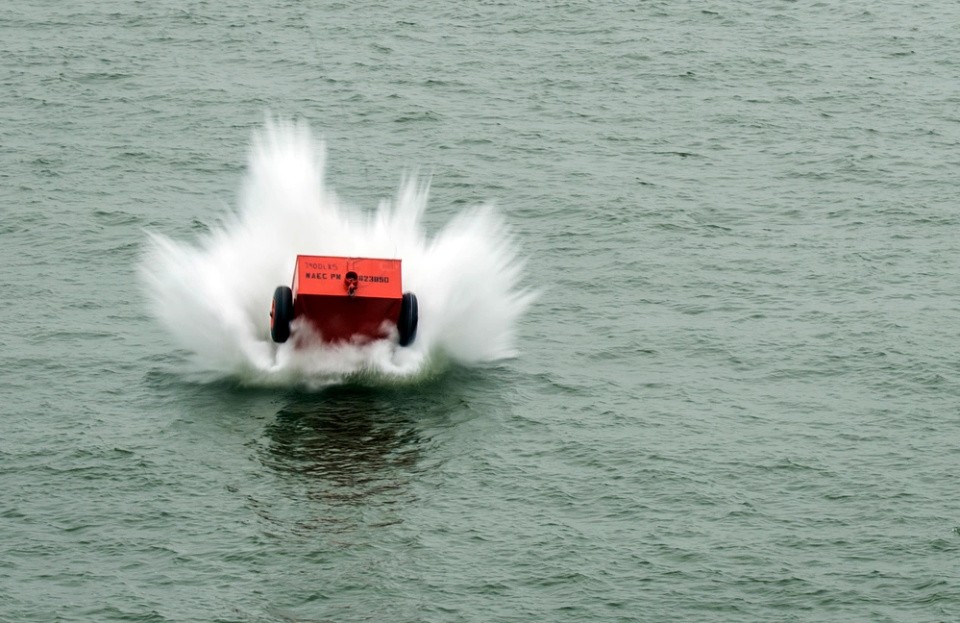 最近社交网络上终于流传出福建舰在码头港池内弹射小红车的画面,从画面中出现的那股水花,基本上就可以判别是弹射测试的结果了。因为类似的水花,也出现在美国海军“福特”号航空母舰测试小红车的画面中。