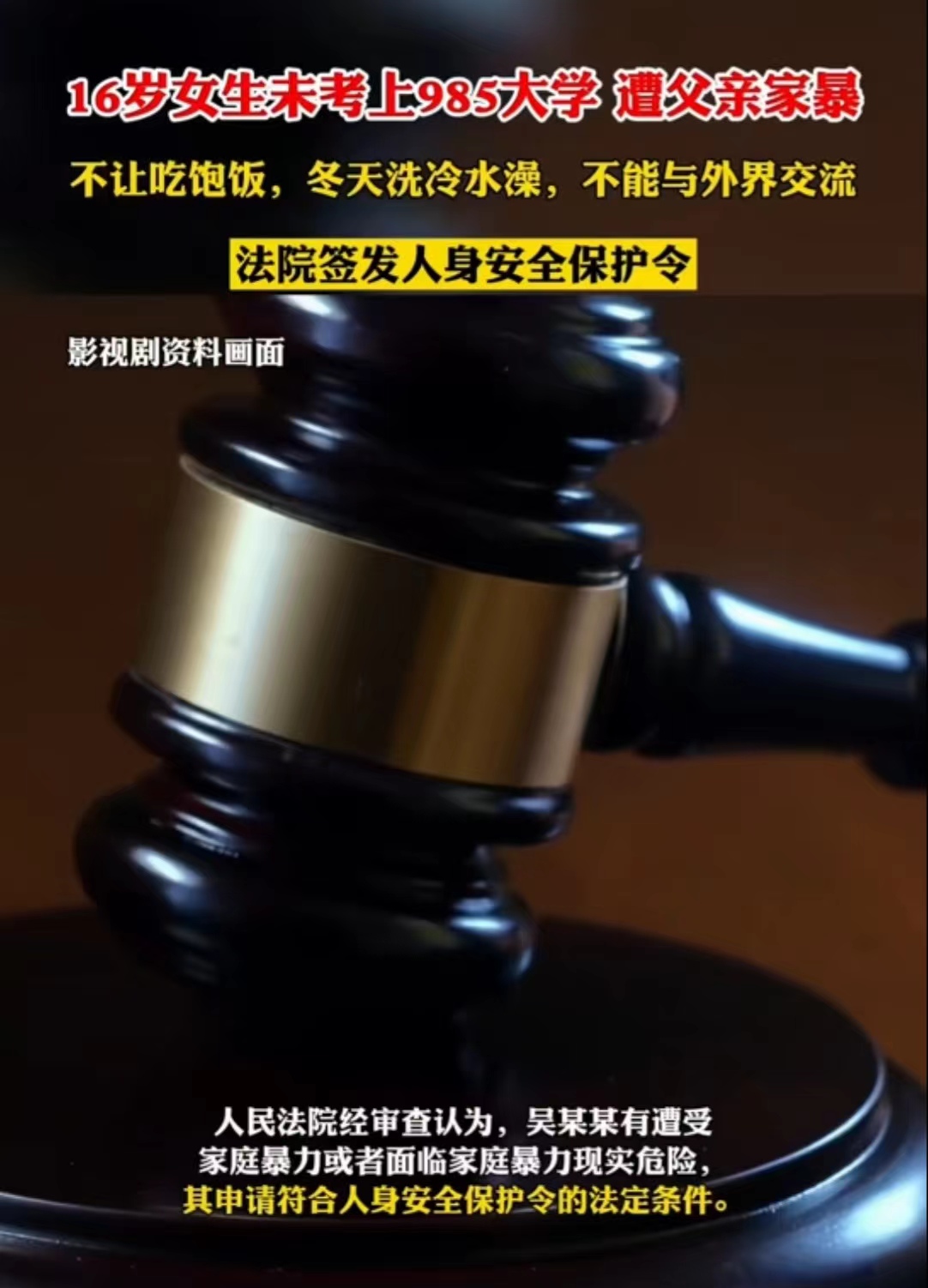 令人愤怒!16岁的女孩,名叫吴某,身处单亲家庭,本就缺少了母亲的照顾,然而她的父亲却因她未能考上985院校而实施了家暴。这种行为简直是禽兽不如,身为父亲,应该为女儿提供温暖和关爱,而不是因为她的考试成绩而对她进行暴力行为。