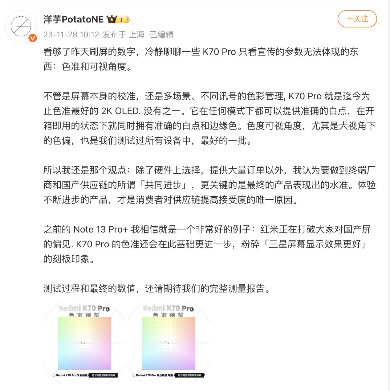 卢伟冰:RedmiK70系列在屏幕、性能、质感、续航、系统等方面全部升级;