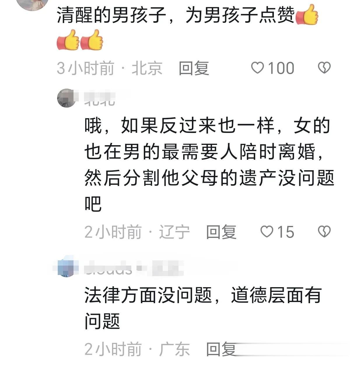 康女士的父母在一次旅行中,发生车祸意外去世,丈夫王某对康女士,婚前婚后特别体贴关爱,在康女士父母去世半年后,康女士突然接到了来自法院的传票,丈夫王某以性格不合起诉和她离婚,要求分割康女士父母留下的9套房产和商铺,以及1000多万存款,总共价值2亿的遗产。 女子:丈夫大学选修学过法律,平时喜欢看有关法律方面的书籍,自己28岁时是上海某外资公司主管,丈夫是酒会接待员,在酒会上认识后,丈夫对她展开了猛烈的追求,两人半年后结婚, 律师:没有遗嘱,女子继承的遗产属于夫妻共有财产。 网友:清醒的男孩子,为男孩子点赞。 网友:男子法律上没问题,道德上有问题。
