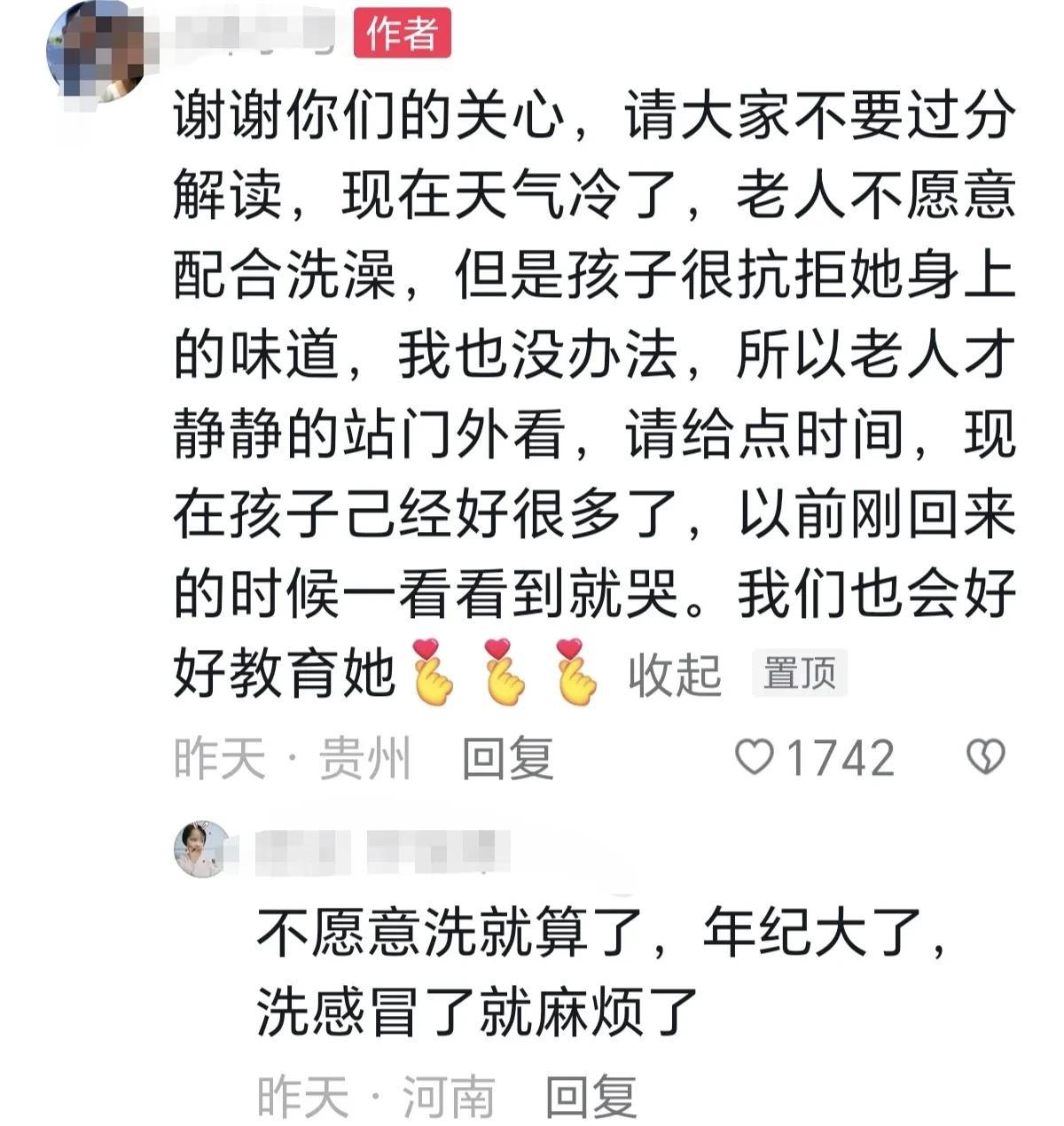 80几岁的奶奶,想要和孙女亲近,但是孙女不肯,嫌弃奶奶身上有老人味,奶奶一靠近小姑娘就哭,奶奶只能默默的从门外看孙女。 都说隔辈亲,老人真的很爱孩子,但是因为年纪太大了,不愿意洗澡,所以身上有味道,孩子很排斥和奶奶接触,父母也有教育过孩子,但是还需要过程和时间。 80几岁的婆婆还不用儿子儿媳妇伺候,这真的是福气了,这么大岁数还什么事都自己干,已经很为子女省心了。 网友:老年人岁数大了冬天洗澡可能怕感冒吧!