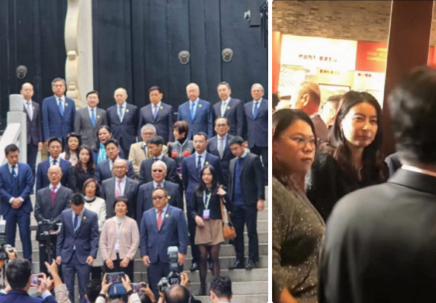 郭晶晶和霍家父子四人又合影,以霍英东孙媳妇的身份出席纪念馆开馆仪式,穿着黑色衣服站在家族人群中中,一张精致五官太有辨识度了,还有她身后站着的是婆姑,婆家二婶陈琪琪也在其中。