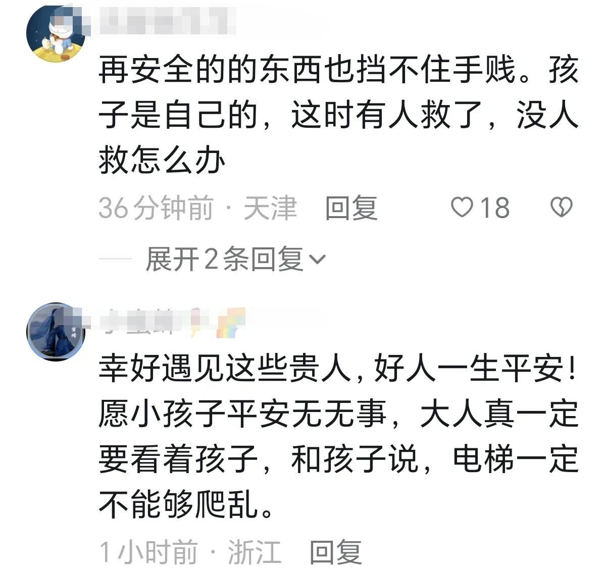 真的太危险了,家里有孩子的,一定要叮嘱孩子,在商场里不要这样做。 近日上海,一位小女孩在超市里用手来回蹭电梯扶手玩,一不小心被电梯扶手卷入带走,还好遇到路过的好心顾客,众人齐心协力拉住女孩,工作人员及时按住电梯按钮,众人抱回女孩,女孩才没有坠楼。 网友:大人一定要看好孩子,和孩子说,电梯不能够乱爬,不能手欠,这时候有人救,没人救怎么办?