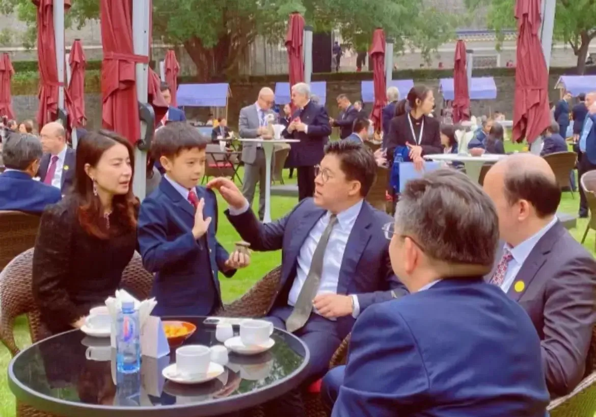 郭晶晶的儿子霍中曦,作为霍家第四代长孙大合影时站在第一排的中间。 他从出生就被认为长得跟太爷爷极为相似,年仅10岁的他穿着西服系着领带,一副小绅士的模样,会紧紧牵着妹妹的手,也会非常有礼貌的跟长辈打招呼,小小年纪持重得体落落大方。 妈妈郭晶晶也一改往日朴素低调的风格,戴了一套红宝石项链耳环,优雅端庄。