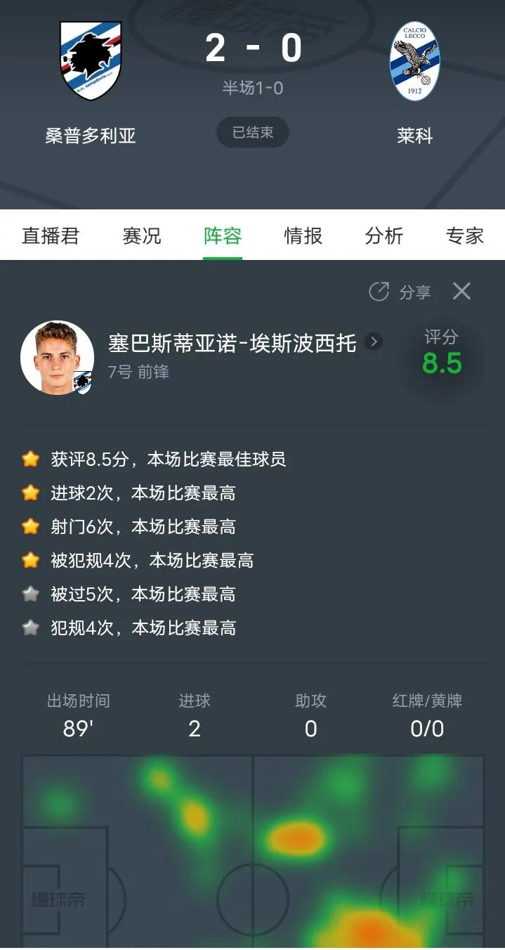 🇮🇹意大利足球 #足球迷思# 塞巴真的很有天赋 两个进球相当飘亮 只可惜就