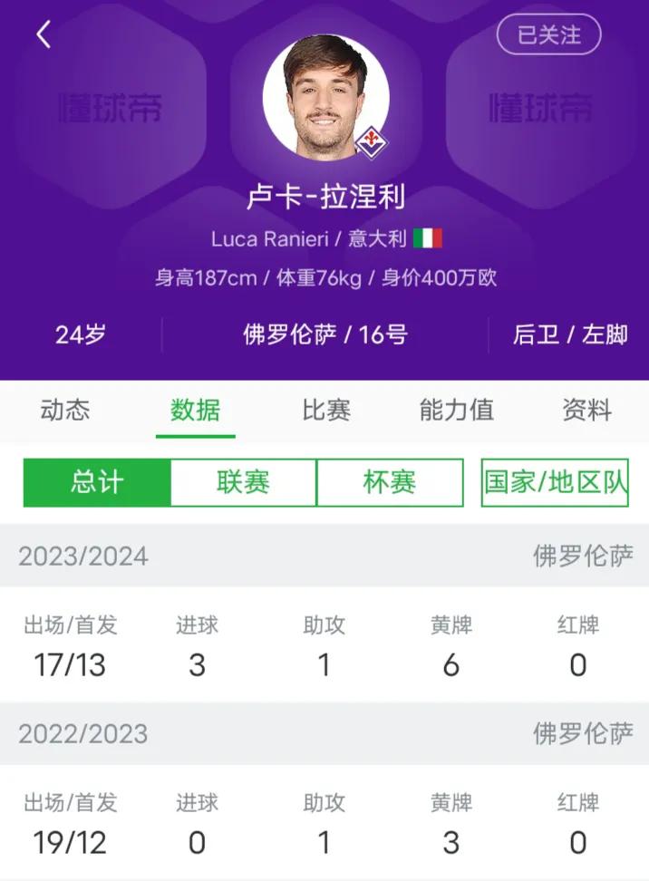 🇮🇹意大利足球🇮🇹 【紫百合欧战出线】 上轮意甲佛罗伦萨和罗马之战,紫百合的意大利中卫卢卡拉涅利怒喷罗马垃圾外援帕雷德丝,引的中文区意黑集体狂吠,表示拉涅利是谁,不认识,不配喷外宾,这次让你们认识认识,意大利99年的带刀后卫,本赛季3球1助了,已经有媒体呼唤意大利教练光头斯帕莱蒂关注一下这名拼劲勇猛的中后卫了
