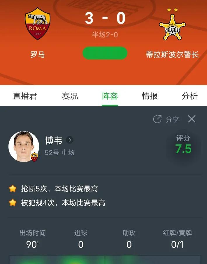 🇮🇹意大利足球🇮🇹 在欧联杯的比赛上,博维出现在居中后腰位置上,看的出穆