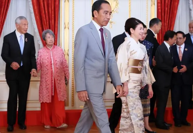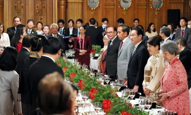 12月16日,日本东盟峰会晚宴隆重举行,这是一场盛大的外交盛会,晚宴的气氛既隆重又热烈。此次晚宴的亮点之一,便是各国首脑的夫人们罕见同框。她们身着华贵礼服,优雅地聚在一起,宛如一道亮丽的风景线。