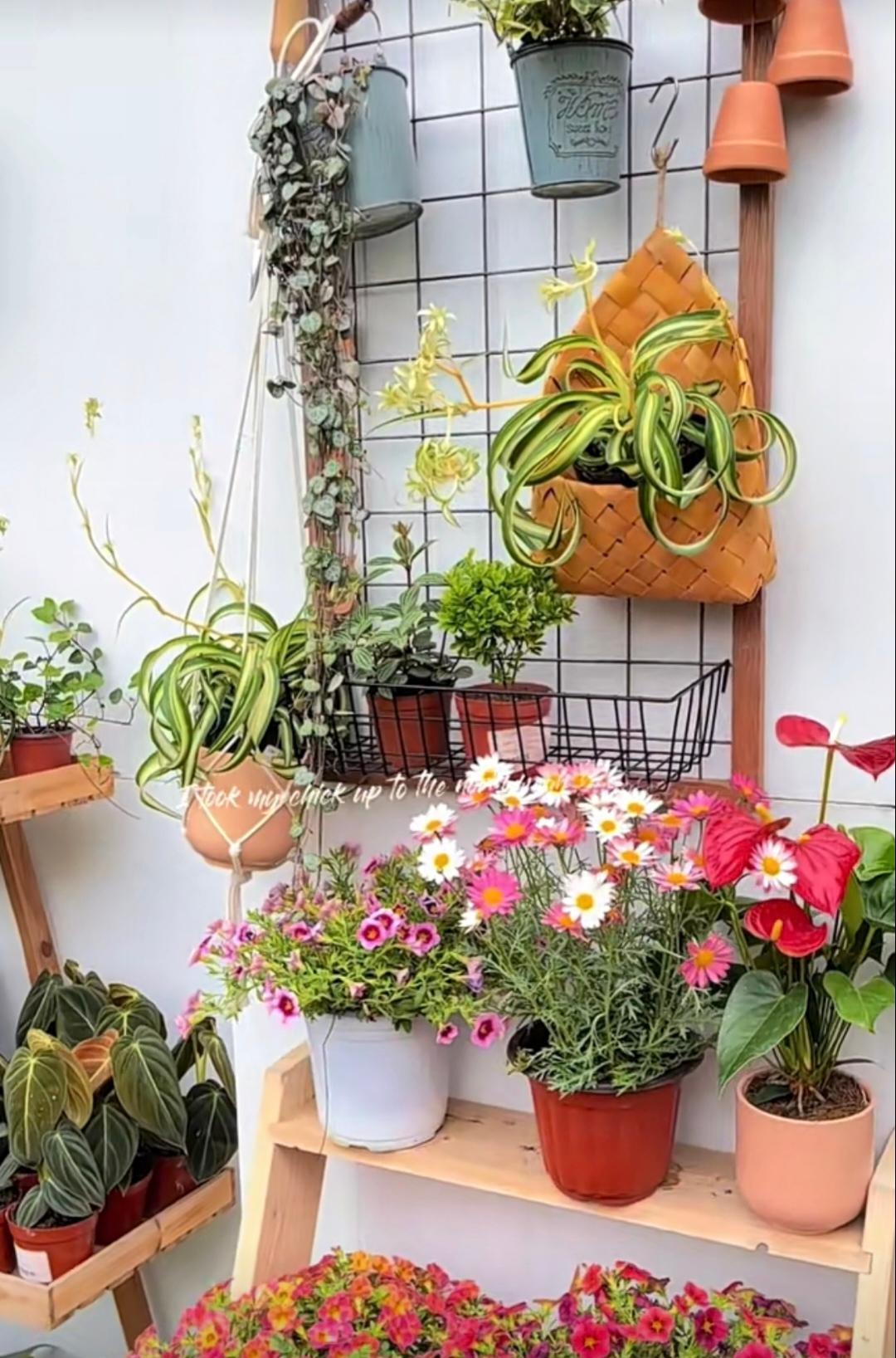 不用爬藤植物也可以打造成一面“花墙” 家里的白墙 别让它一直空着 这样做 可以让它瞬变美美的“花墙” 打造一个属于自己的花园一角 闲时赏花 温馨又美好