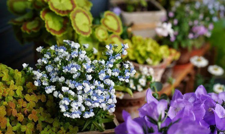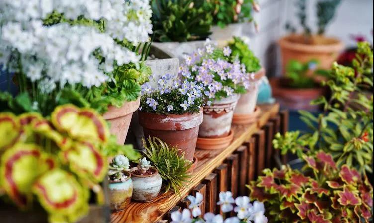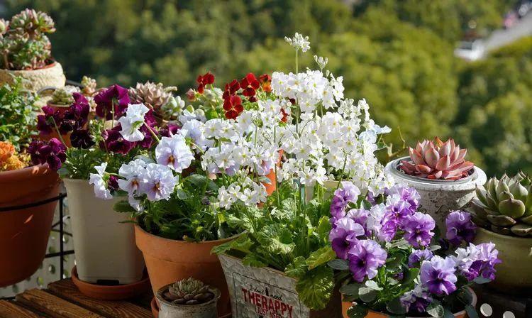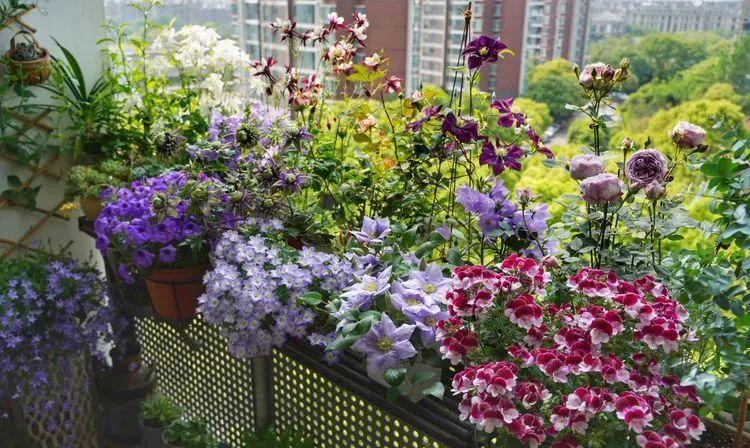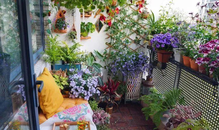 不足4㎡的绝美花园!小阳台如何做到大折腾 阳台概览 一个室外阳台(未封闭),有玻璃顶,面积1.2*3m,朝南, 几乎全日照,春秋有2-4小时阳光直射,夏季部分面积有直射光,通风绝佳。 既然面积实在有限, 那就只能尽量拓展垂直种植空间。 爬架,隔板,壁挂三件套来个遍, 但是还是要克制一下“贪婪”的本性, 毕竟壁挂花盆在浇水上有诸多不便, 而且垂直空间还是需要一些留白与硬质装饰, 才有生活的气氛。 落实到实操层面,就是根据不同区域的 光照强度和空间限制配置各种类型的花架。 ❀阳台外侧❀ 阳台的最外侧妥妥的阳光vip专座, 一定是要留给月季,酢浆草, 铁线莲等喜阳植物享受暴晒的洗礼。 ❀阳台东墙❀ 阳台东墙在 的光照可以达到4小时以上, 钉上壁挂藤架,和喜欢冷凉的爬藤植物锁定cp。 ❀角落❀ 各种零星的小角落也要充分利用起来, 组些小景,放点摆设,细微之处更显巧思! ❀阳台北面❀ 阳台北面,也就是贴着室内房间的最里侧, 在冬春的光照最佳,其它季节几乎没有直射光。 今年 趁着“农闲”把原本的储物箱 换成了两层阶梯式花架,架上摆花,架下储物。 经过各种组合折腾, 这个小花架也成了我鼓捣“堆盆” 这种“高阶”园艺操作的试验场, 整个阳台妥妥的c位舞台。 所谓堆盆,顾名思义就是各种盆栽的组合, 好比可移动版的花境, 往往都是喜欢买红陶大花盆的 大花园主们喜欢操作的园艺形式… 可是,我们阳台虽小,心却很大 只要大胆尝试,小阳台也能堆堆乐! ❀一点堆盆小心得❀ ⚠️一定要高低错落! ⚠️花草色调不一定要统一,但是忌讳饱和度都太高! ⚠️一定要有观叶植物! ⚠️花盆色调整体尽量统一,红陶,水泥,铁艺比较保险,不容易出错 写在最后的碎碎念 我相信很多想要把阳台打造成花园的小伙伴 看了各种分享的案例和美图之后都会心情澎湃, 购物车瞬间超载,紧接着就是陷入, 花,盆,土,肥,药,阳光,空间, 时间永远都不平衡的循环。 有时候克制一点,耐心一点, 磨唧一点或许更能好好享受园艺的乐趣, 生活的乐趣。 总结 以上就是花友玩转小空间阳台的各类方法啦, 美景繁荣,皆是心思!看到最后, 课代表当然还是要为大家总结一下! 小空间花园打造,你需要: 1.擅用垂直空间 2.根据空间大小及日照程度搭配花架与植物 3.角落巧妙造景 4.大胆尝试堆盆 5.耐心 花友的阳台不足四平米, 却仍旧可以依靠各类想法创造出一个绝美花园, 在他的阳台上龙面花、角堇、蓝雪花、酢浆草、 铁线莲、海芋、铜钱草等各色花草相映成趣, 组成了一个生机勃勃的花园!