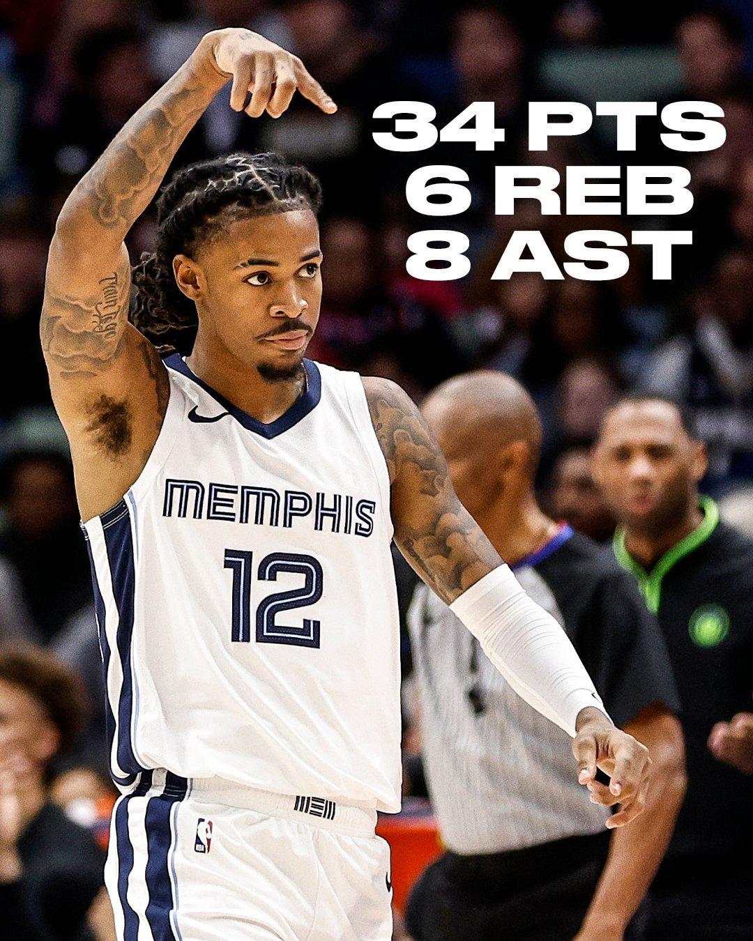 #莫兰特绝杀# 25场解禁复出,全场最多落后23分,最终以绝杀的方式带领灰熊队