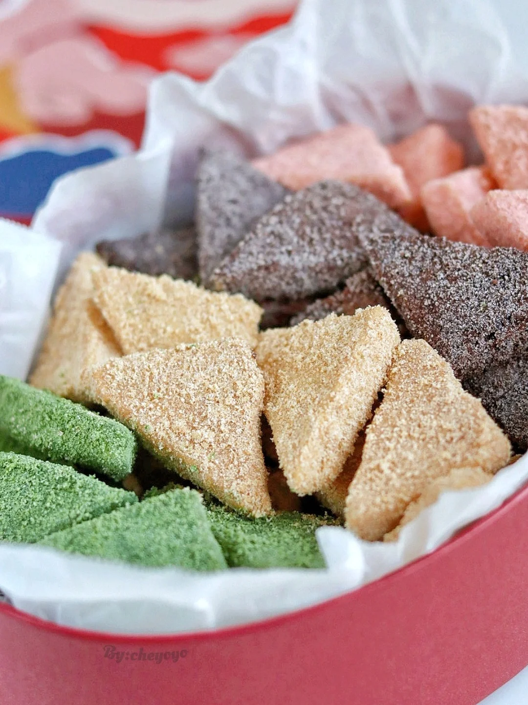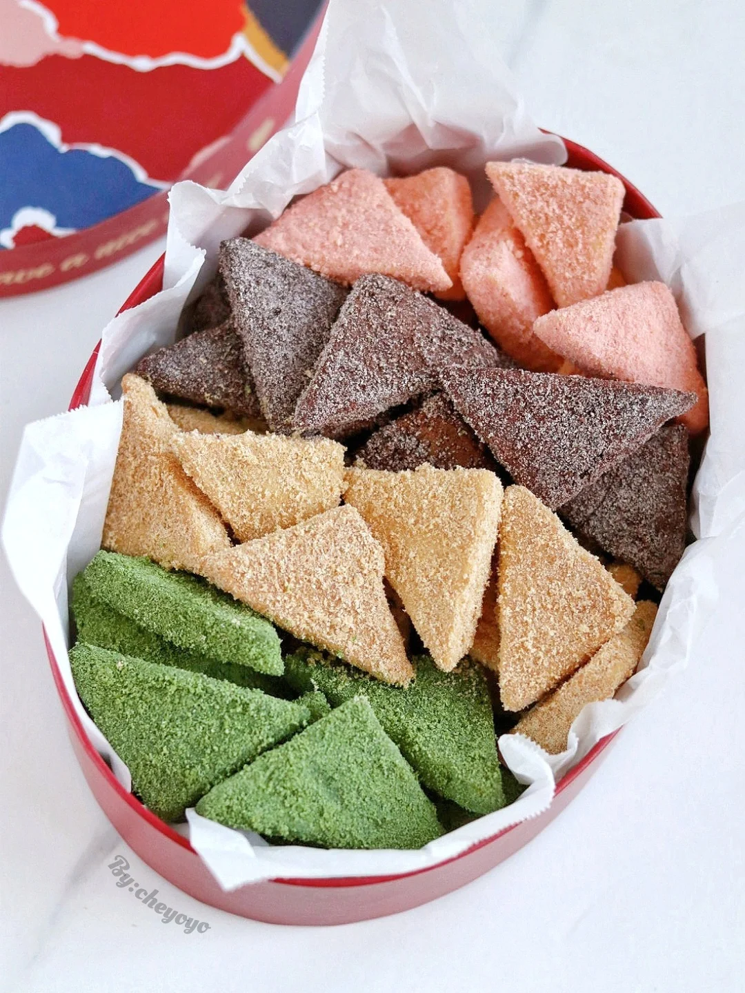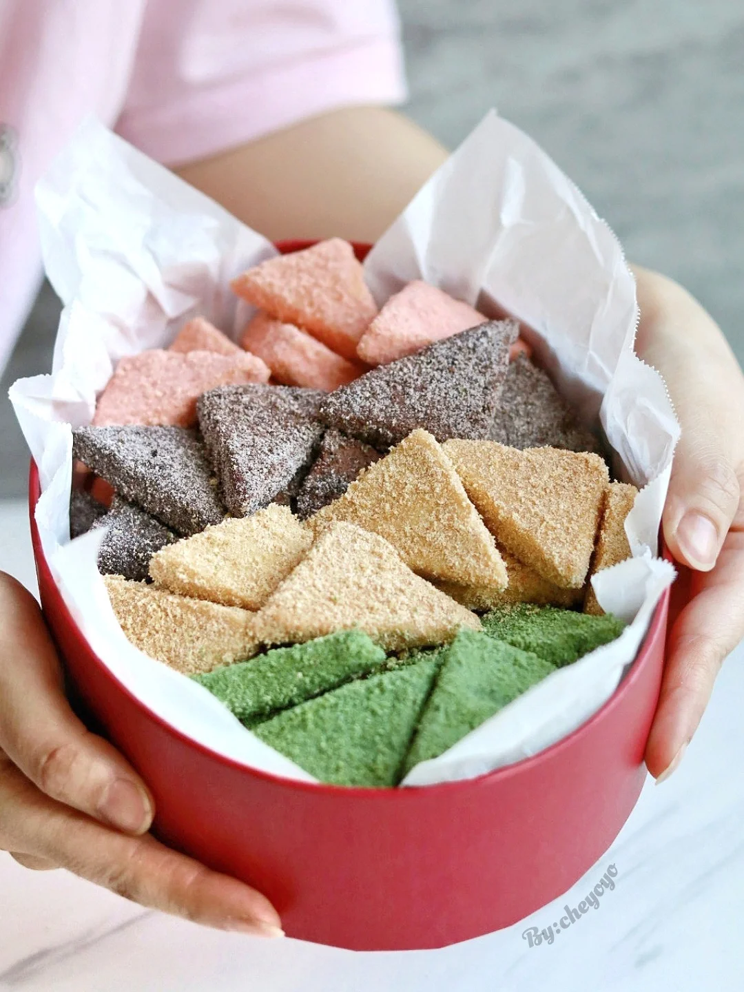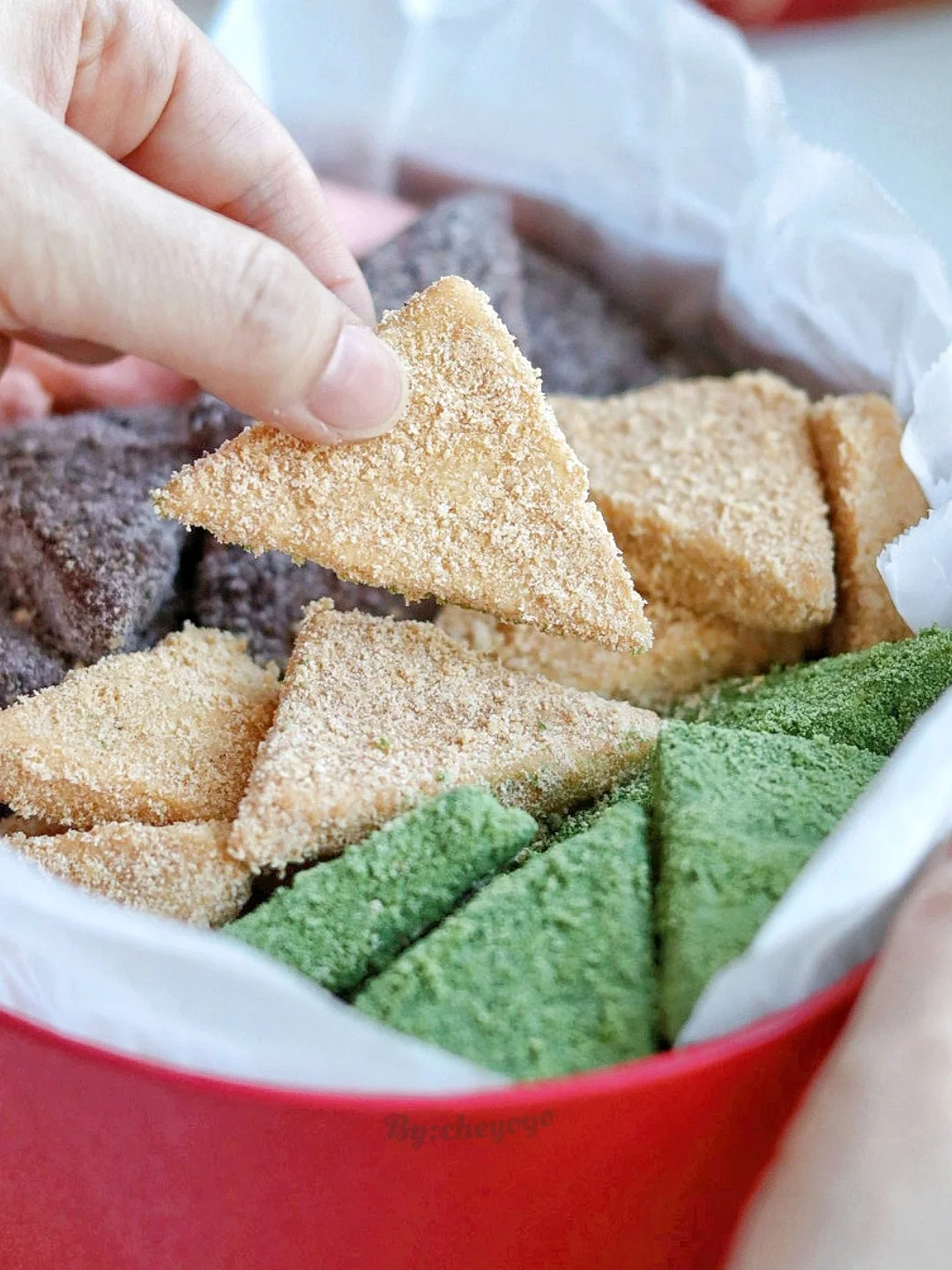 全家都爱吃的雪绒三角酥!外表毛茸茸的好似落满雪绒花入口香甜酥脆,好吃到停不下!草莓雪绒酥、豆乳雪绒酥、抹茶雪绒酥、可可雪绒酥,每一款都有超高回购率!做法简单适合新手,不需要打发哦😋