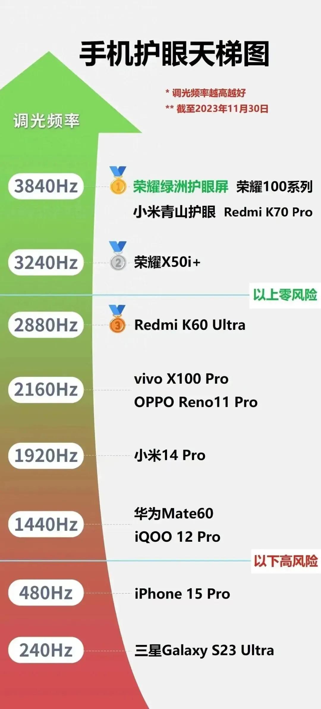 没有对比就没有伤害!屏幕护眼家家吹,护眼还是荣耀独一档,荣耀100系列这护眼表现