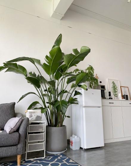 天堂鸟,放在家里真的很好看,放在有阳光的客卧,放在不能晒到太阳的楼梯旁,都能养的很好,唯一的养护就是定时浇水,卧是5天浇一次,不能缺水,喜水的植物,叶子脏了会擦一下。