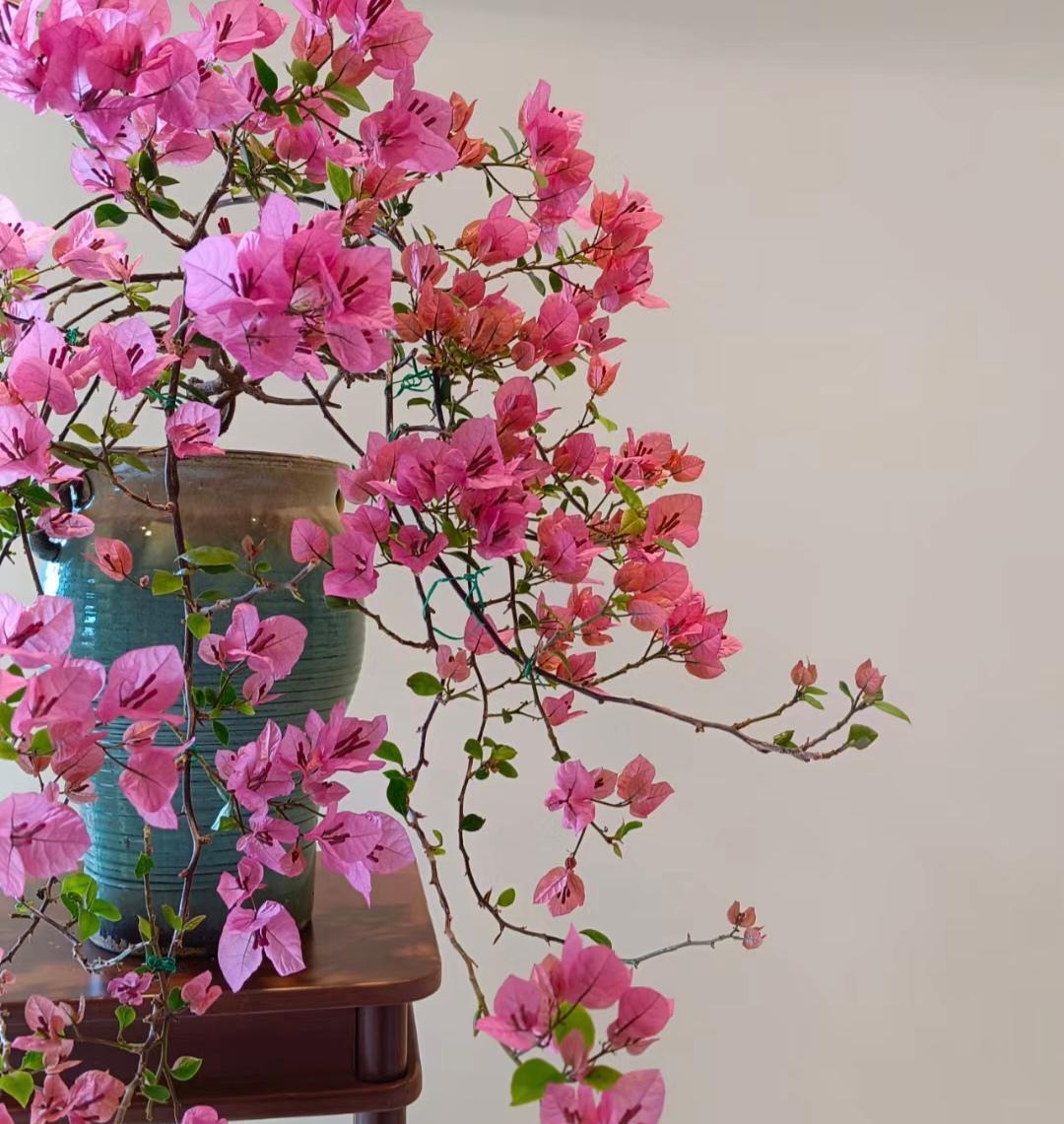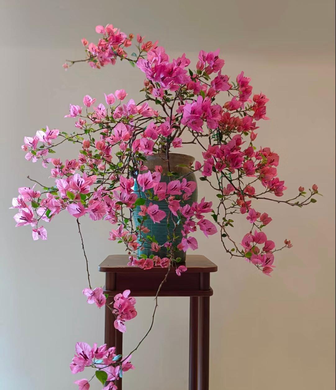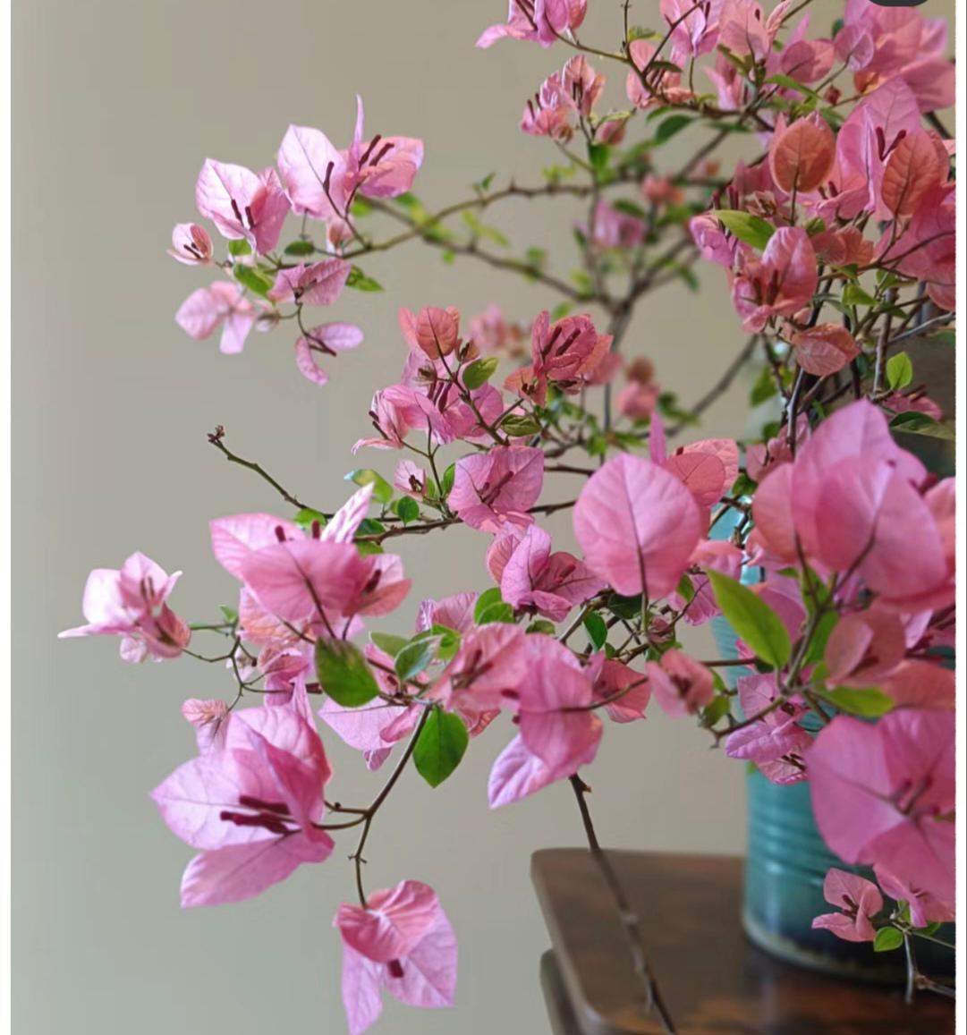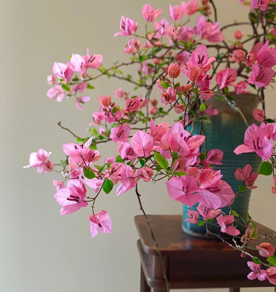橙粉的静态美,你喜欢吗? 三角梅现在正是盛花期 做好养花护 不长叶子只长花 若是没有做好养护, 那么绿油油的叶子就会冒出来 今年春天难见花 春天促花可以分成三步走 第一步:多晒 一天的光照时长不能低于4小时,最好在6-8小时之间 这样它才有足够的光合作用来制造开花所需的能量 第二步:控水 三角梅的生长分为营养生长阶段和“繁殖生长阶段” 两者不可共存 控水干养,能让它有一定的生存危机,快速过度到“繁殖生长阶段”,也就能快速的分化花芽,只长花,不长叶子 第三步:多施磷钾肥 再底肥充足的情况下,最好每浇两次水就在水中兑入千分之一的磷酸二氢钾来专门补充磷钾肥,这样很快它的第一波花就开了 还有春天的三角梅开花前不要修剪,要切记
