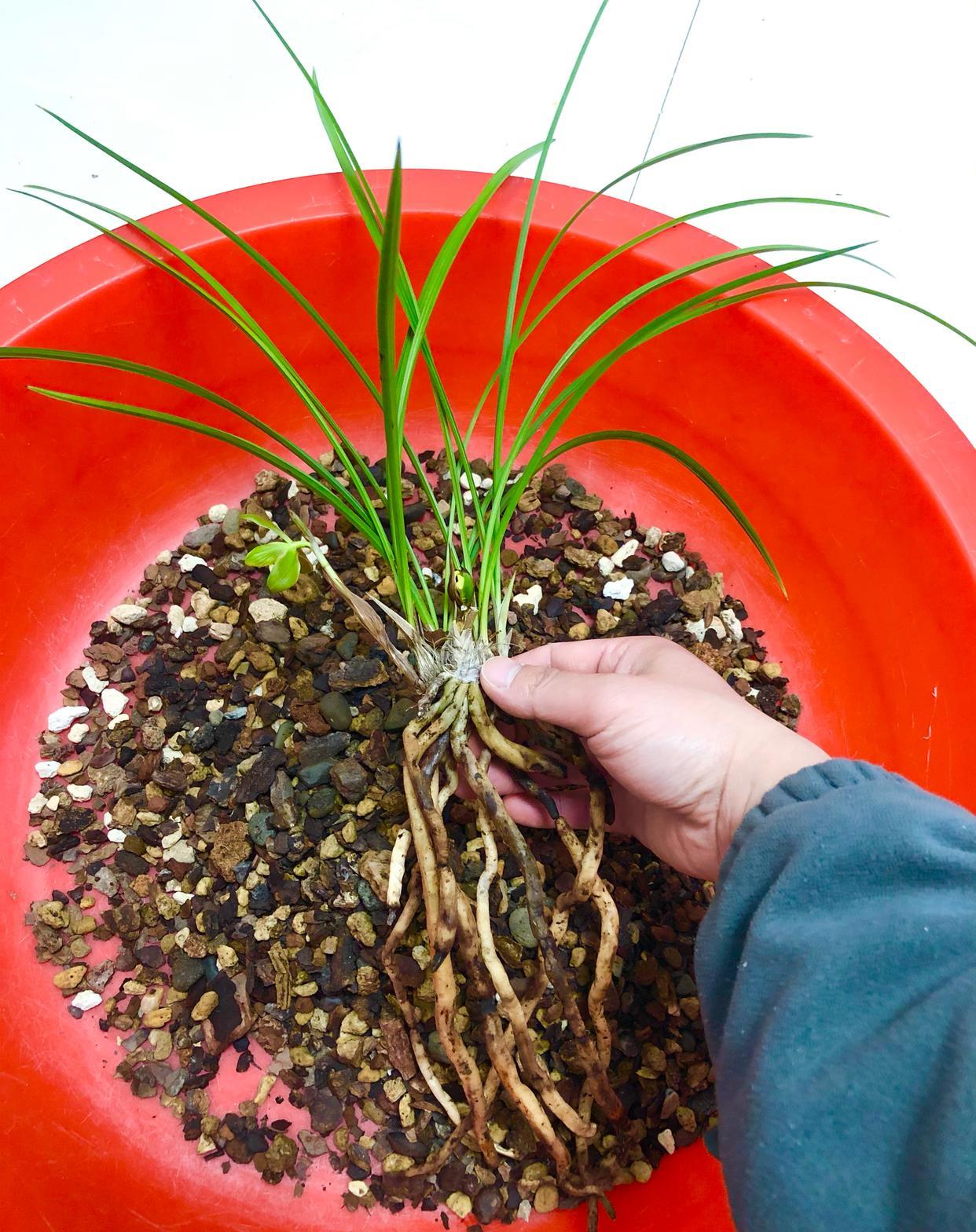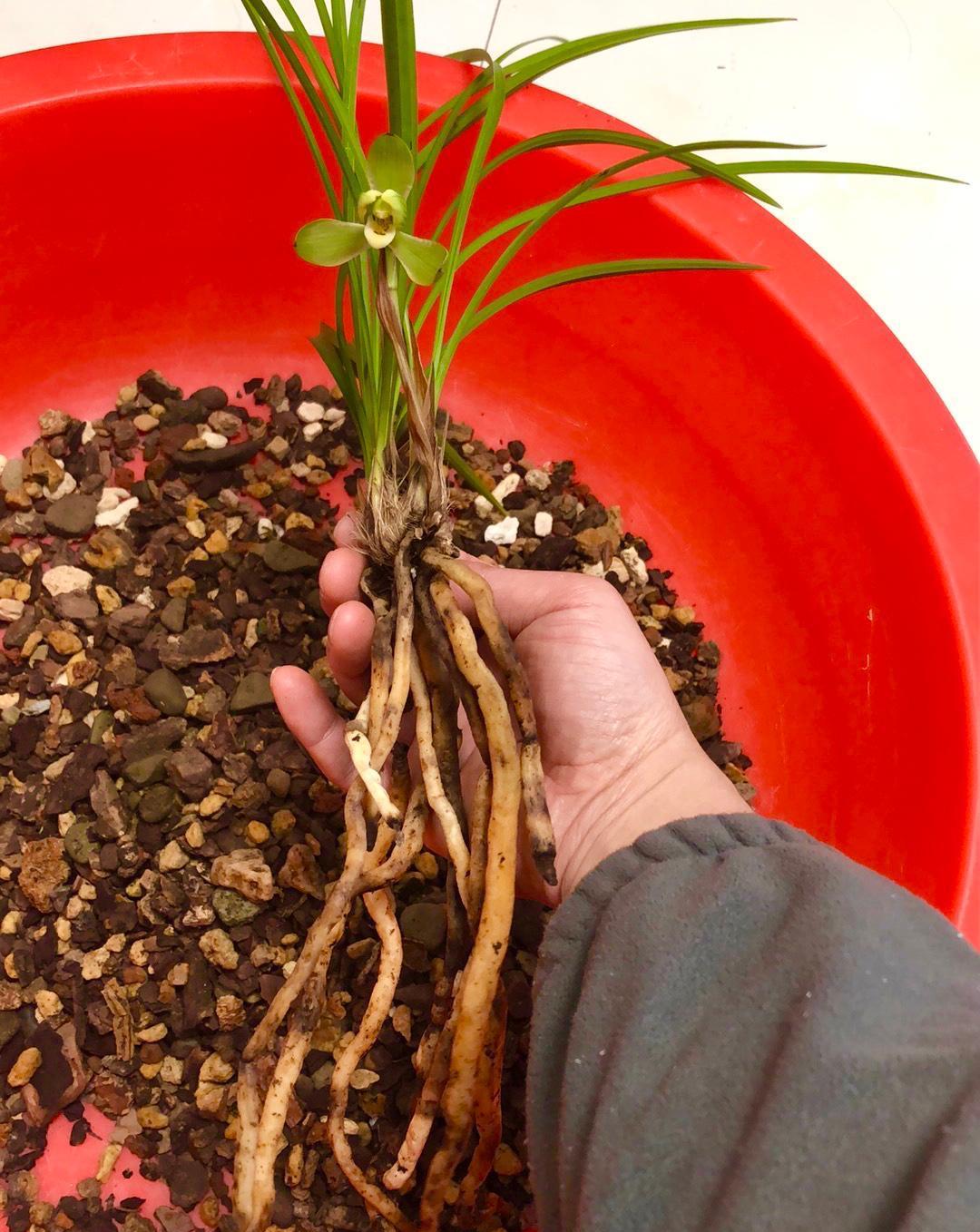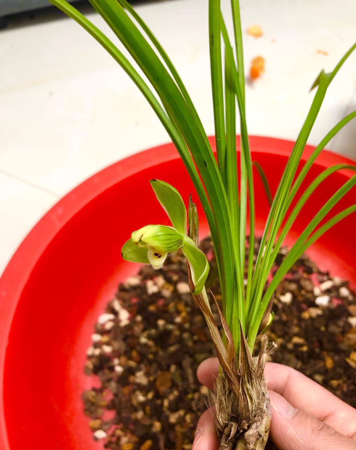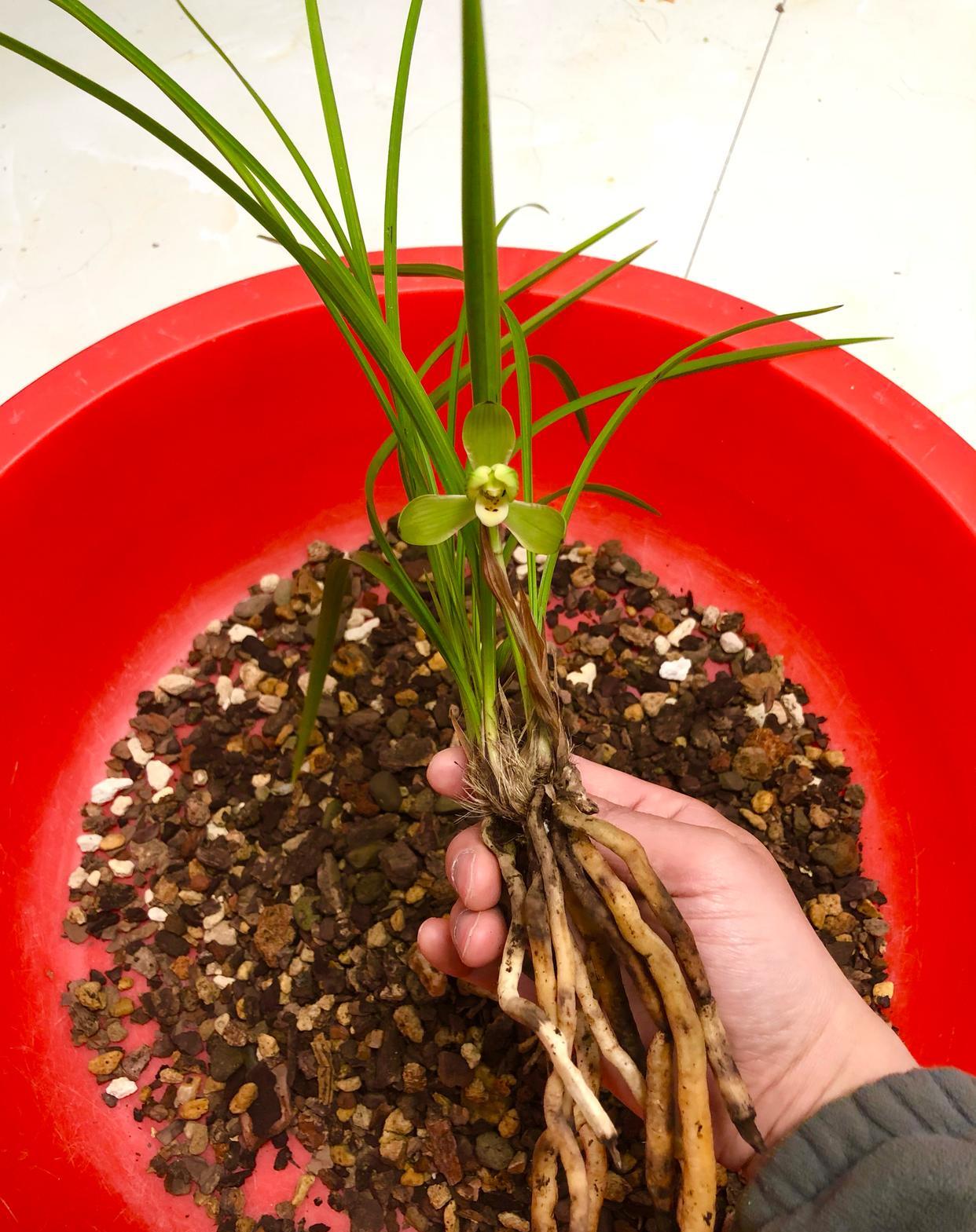 春兰贺神梅远嫁云南,原盆植料配方很简单,松栗王兰花植料1:1混合石子