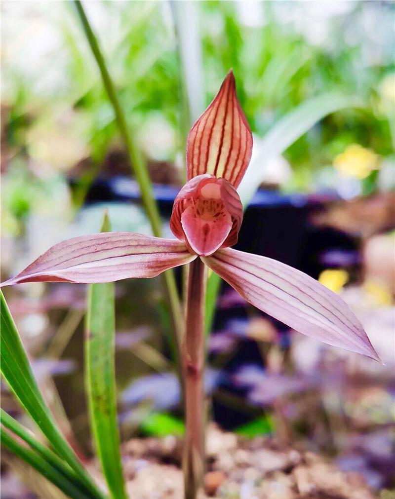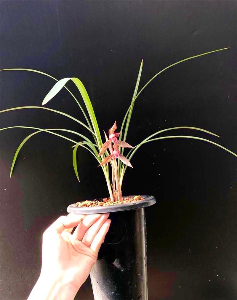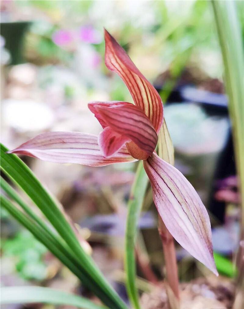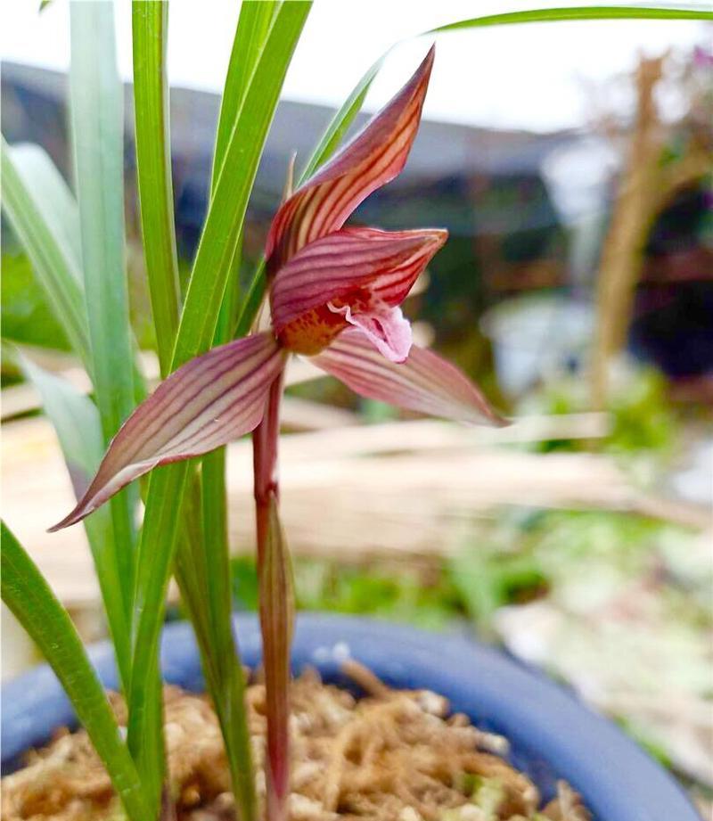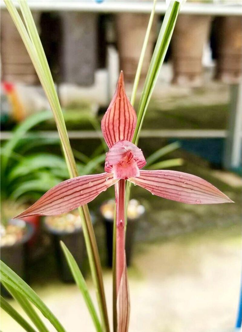 春兰红宝石,春兰和豆瓣的串种,橙红花,全花一色,捧瓣不易开天窗,舌瓣厚实,白中带红,花瓣中有深红筋纹,花梗橙中泛红,新苗呈现紫红色,产地云南蒙自,有香味,非常漂亮的一个花。