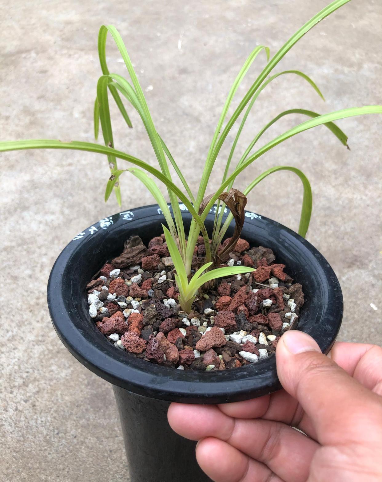 春兰花草花来花芽,叶色很好,期待更好表现 一盆春兰黄草黄花,今年发了一个新苗,新苗叶色嫩黄嫩黄的,比老苗颜色更亮,越看越喜欢,特意端了一盆春兰的宋梅做对比,右边宋梅叶色碧绿,左边这盆呈现黄绿色,今年开过花的,可以看到凋谢枯萎的花朵还在,植料是使用松栗王兰花植料混合火烧石栽种的,希望她越长越好,有更好的表现。
