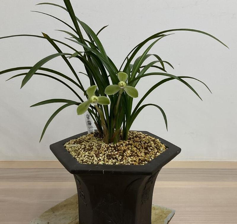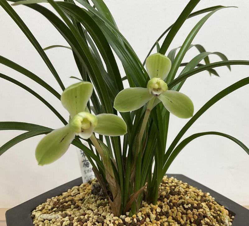 春兰宋梅之美源于好几个标准汇集于一处之和,最外边的花瓣都是很圆很周正的,花舌看上去像刘海一般,花杆都比较纤细,整体搭配的比例恰如其分,让宋梅产生很有艺术感的美。