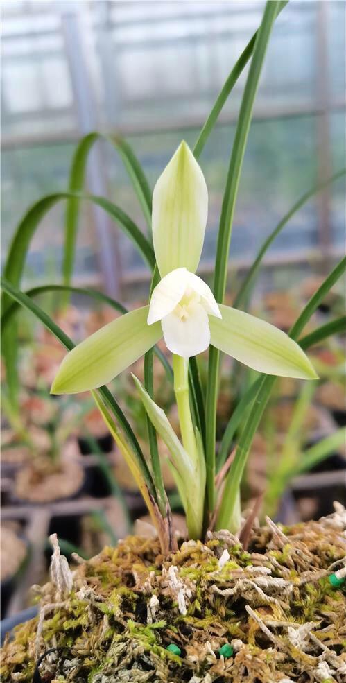 春兰素花汉宫秋月,花开云南玉溪诺道兰坊,与大家共赏,全花一色,色泽偏白,捧瓣不开窗,纯白舌头干干净净,平铺下挂,素净雅致。