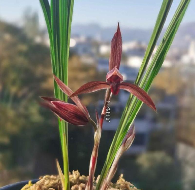 春兰腾越红素,又一个花季的第一箭花,屋顶露台自然种养,开得不错,共赏。