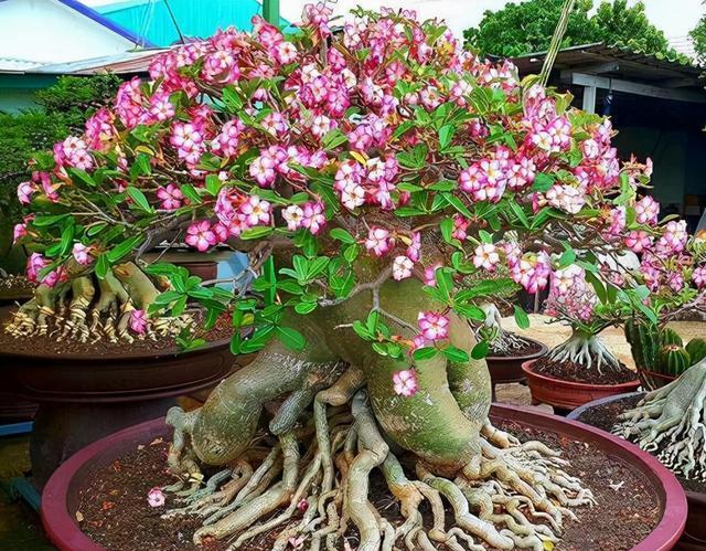 沙漠玫瑰是夹竹桃科天宝花属的多浆植物,原产于南非的沙漠地区,因为开花娇艳,漂亮的可以和玫瑰花相媲美,所以被称为沙漠玫瑰,和真正的玫瑰花,一点关系都没有。 它枝干粗壮,就像一个大大的储存瓶,储存了大量的水分和养分,所以它天性耐旱怕积水,喜欢温暖干燥的生长环境,耐酷暑,不耐寒,一般一年能开两次花,一次在春一次在秋,最佳的生长温度是25-30度, 温度低,会生长缓慢或是停止生长。 的时候,养沙漠玫瑰,最好能在10度以上的环境里,不然易冻伤,若是能在15度以上,更利于它的生长,沙漠玫瑰在 ,生长慢,对水分和养分的需求都不多。 建议直接停止施肥,浇水也要减少,叶片不发蔫不要浇水,平时养护,放在光照充足的地方,多晒晒,更利于它的生长。 到了 若是想让沙漠玫瑰尽快开花,建议多晒太阳,一个月施一次复合肥,开花前10到15天增施一次磷钾肥,能让它生长快,开花艳丽,观赏价值高。