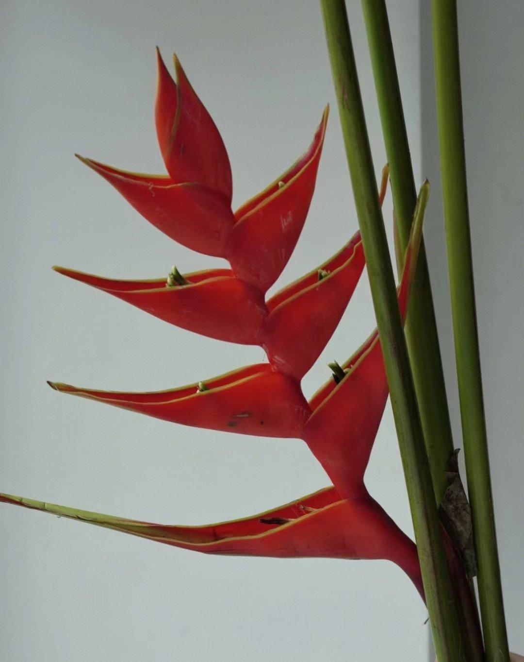 大红鸟是芭蕉科蝎尾蕉属多年生草本植物,原产于巴西。它是让人无法忽视存在的一款花材,高度一般在1m左右。它的花序形似蝎尾,色彩艳丽,是一款霸气外露的花材。 鲜切花养护 正确的养护可以延长鲜花的花期。 【修剪】去除腐烂、变黄枝叶,斜角45度修剪。 【清洗】每日清洗花瓶及枝干基部。 【水位】中水位,约为花瓶1/2左右水位,每日换水。 大红鸟属于异形的花材,加之它大气独特的气质,常用于商业布置及装置中。它寓意且色彩喜庆,用在年宵花礼和生日花礼中也很适合~