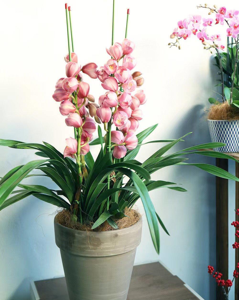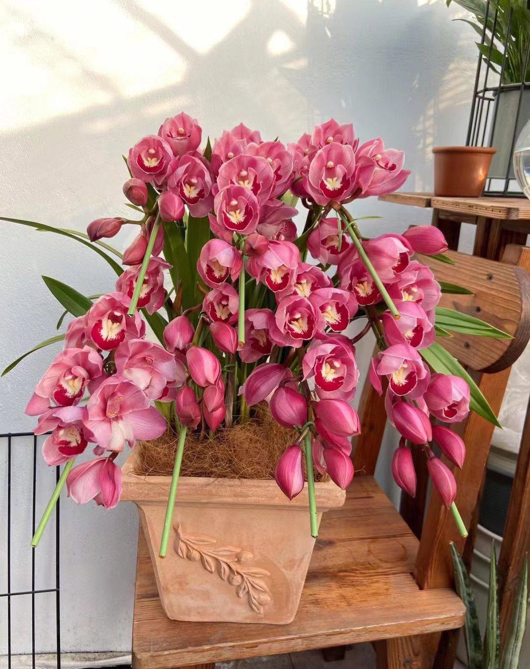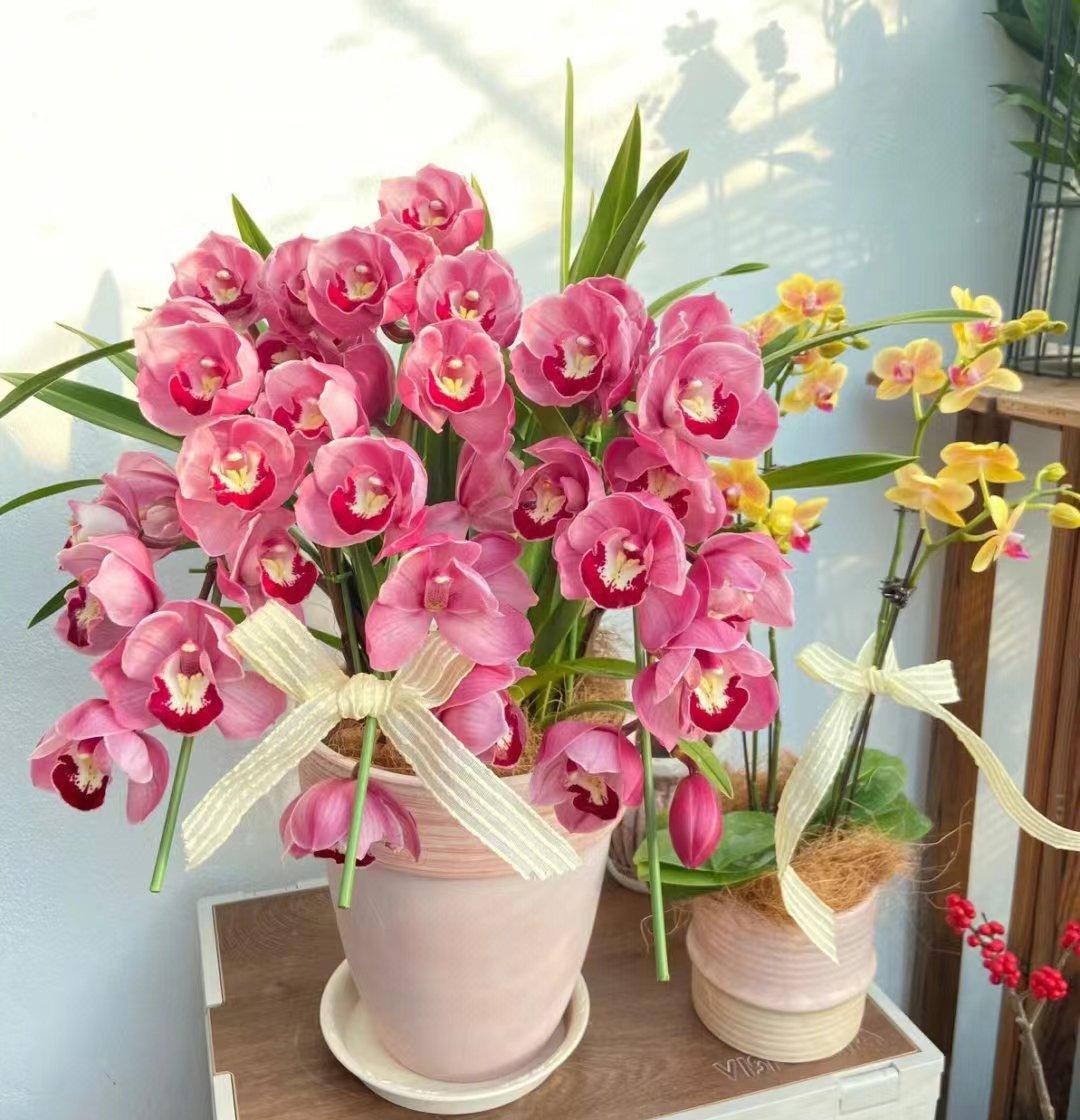 大花惠兰养护的技巧: 1、土壤 大花蕙兰要求疏松透气、排水良好的栽培基质,可用苔藓、炭屑、蕨根、木炭、树皮块、碎砖等混合栽培。不宜用普通的培养土和种植中国兰花的培养土种植。通气和排水不良的土壤会导致根系腐烂。 2、浇水 大花蕙兰喜较高的空气湿度,春夏秋三季,在给予根部充足水分的同时,应经常叶喷水。但在早春开花后,大花蕙兰的短暂休眠期内,必须少浇水,待新芽生长出较大的新根时才能多浇水。 3、光照 大花蕙兰生长过程中,需要充足的散射光,夏秋季应用遮光网遮阳50%左右,阴天或冬春季阳光柔和时要打开遮光网接受直射光。但在开花期应将兰株置于较弱光照的地方,以便其开花鲜丽。 4、温度 喜冬季温暖和夏季凉爽气候,生长适温为10℃至25℃。夜间温度以10℃左右为宜,尤其是开花期将温度维持在5℃以上,15℃以下可以延长花期3个月以上。 5、施肥 生长期间应薄肥勤施,可追施稀薄的化学肥或复合肥,若施较多的骨粉,腐熟的豆饼肥,就能使花大而多。液肥应按1∶1000稀释,每10天施1次,开花前应施足肥,开花期和盛夏季节不要施肥。