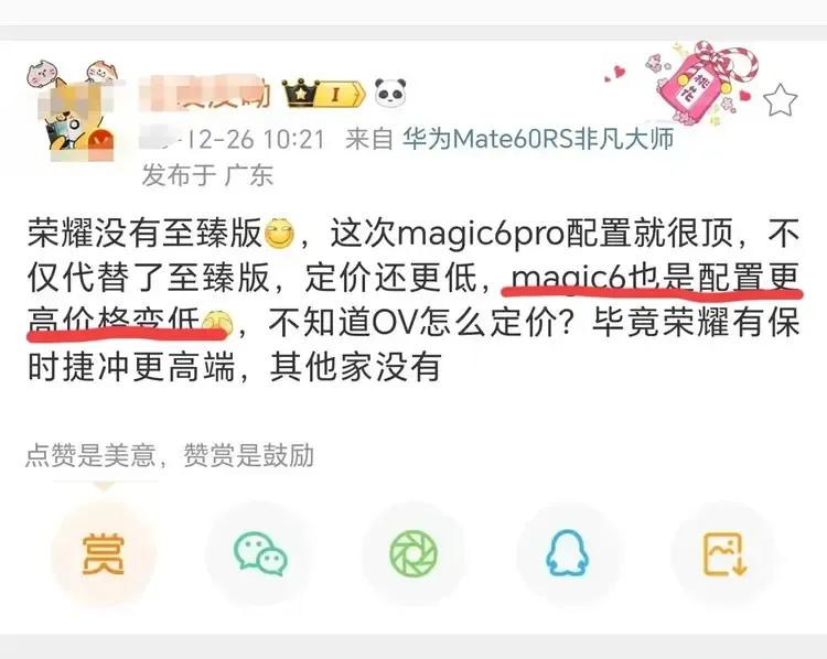华为:小老弟,急着要和我过过招?[哈欠] 荣耀:我已经迫不及待了,我的Magic6系列已经胜过大哥了[大金牙] 荣耀Magic6系列全方位赶超华为Mate60系列,不论是性能、影像,还是卫星通信完全不惧华为,大有后来居上之势。值得一提的是,这次的定价有惊喜,配置大幅升级,价格还会降低,这要让很多友商汗颜了[笑哭] #畅聊数码新品#