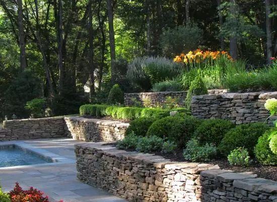 挡土墙首先要为花园挡土, 防止土顺着流水到处流失。 同时,这些墙壁经过精心设计, 也可以成为景观中的实用元素。 第一类包括具有装饰功能 并用作建筑和艺术元素的墙壁。 它们可以建在一个平坦的地方 或具有小坡度作为景观设计的元素。 将土壤固定在地形斜坡上的挡土墙是第二类。 它们被广泛用于梯田自然斜坡, 以增加园艺和园林景观元素的有用面积。 现在基本都是具有混合功能的挡土墙, 既有挡土功能,也具有吸引人的外观。 使用装饰挡土墙,无需额外的投资 就可以将原始的花园设计视觉分割成功能区域。 这样的墙壁是花园的装饰, 可以与房屋的建筑风格、围墙、 岩石花园或瀑布相结合。 装饰挡土墙不需要混凝土基础。 它们在厚度为20-30厘米的碎石垫上创建。 结构挡土墙类型有:重力墙、悬臂墙、 反墙、背包墙、钻墩墙壁等。 挡土墙设计思路可以简单或复杂, 可以将石墙、木材、混凝土等作为材料。 这些材料的选择取决于墙体施工所需的工作量。 砖是建筑挡土墙的常用材料。 但是,只有当墙体不承受重载荷 或设计元素时才应使用砖块。 砖墙不适合水库或湿度较高的地方, 因为砖块不能抵抗水分损害, 高湿度会破坏砖石。 结构的高度不应超过一米半, 应特别注意砖墙的厚度。 由于成本高,耐久性低, 现在的砖不被广泛用作挡土墙的建筑材料。 天然石是建筑挡土墙最受欢迎的材料之一。 天然石材非常有效,坚固耐用, 但也是昂贵的材料。 石灰石、砂岩、花岗岩、石板、 巨石、小鹅卵石等。 大自然提供的选择非常丰富, 但最好是寻找该地区典型的天然石。 建筑天然石材挡土墙时, 您可以使用干砌石或水泥。 干砌石意味着,不用水泥, 只使用种植植物的土壤。 除了功能和耐久性之外,巨石挡土墙 是其中一个具有极好视觉吸引力的品种之一。 混凝土也许是建筑挡土墙 最受欢迎和最可靠的材料,其承重性能较好。 它允许建造更复杂的形状,如半圆形, 但混凝土挡土墙的主要缺点是 需要装饰石、砖、瓦或其他材料搭配使用, 这样使得墙壁看起来不是很有特色。 使用混凝土时,房主可以选择预制混凝土块, 这是特别设计用于挡土墙施工的。 预制块是另一种经济有效的材料, 被广泛用作挡土墙材料。 它们由水泥和各种类型的骨料制成,低成本, 良好的耐用性和轻质性使其成为 房主的受欢迎的选择。 木材是用于建造挡土墙的另一种材料。 对于喜欢DIY项目的许多房主来说, 这是一个有吸引力的选择。 施工非常简单,挖一条浅沟,压碎土壤, 用砂石填充,往上面架设木材即可。 木材需要适当的加工,原木或木板 应用特殊的防水化合物处理和浸渍, 防止其腐烂,提高其耐久性和耐候性。 它们可以切割成所需尺寸, 原木、竹子都可以制成围栏, 有时甚至可以用锯切的树干制成。 石笼挡土墙现在尤为受欢迎。 石笼具有矩形和各种尺寸的模块, 里面充满各类石头。 石墙挡土墙的建造是非常容易的, 如果墙壁很小,甚至不需要基础。 石笼石墙是高效和环保的,在外观方面, 可以将任何东西填充到篮子中—— 从鹅卵石、巨石到任何其他材料。 挡土墙设计理念中的艺术和创造力 墙壁或小或大, 可以使用木或混凝土, 这样的墙壁可以在许多地方看到。 挡土墙是各种倾斜地块的优选, 可以消除土壤侵蚀的问题。 此外,它们是景观设计中的强大元素, 是的花园看起来特别美丽。